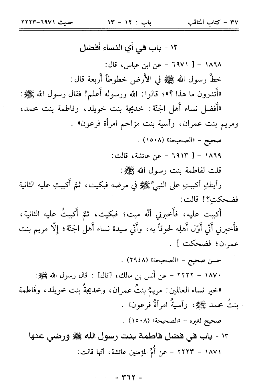 13 - باب في فضل فاطمة بنت رسول الله - صلى الله عليه وسلم - ورضي عنها