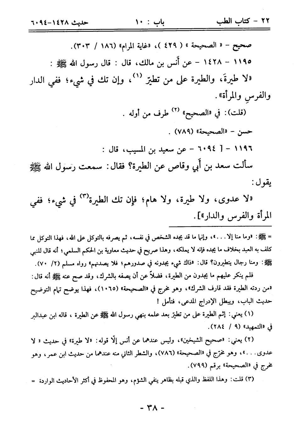 "لا عدوى، ولا طيرة، ولا هام؛ فإِن تك الطيرة (¬3) في شيء؛ ففي المرأة والفرس والدار"].