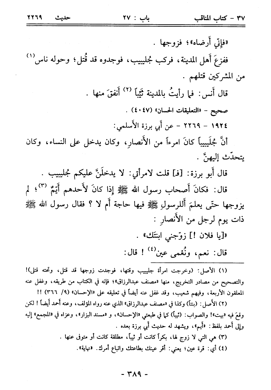 أنَّ جُلَيبيبًا كانَ امرءًا من الأَنصارِ، وكان يدخل على النساء، وكان يتحدّث إليهنَّ.