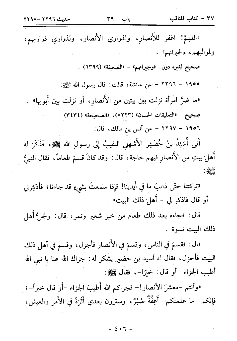 أَتى أُسَيْدُ بنُ حُضَير الأَشهلي النقيبُ إِلى رسولِ الله - صلى الله عليه وسلم -، فَذَكَرَ له أَهلَ بيتٍ من الأَنصارِ فيهم حاجة، قال: وقد كانَ قسمَ طعامًا، فقال النبيُّ - صلى الله عليه وسلم -: