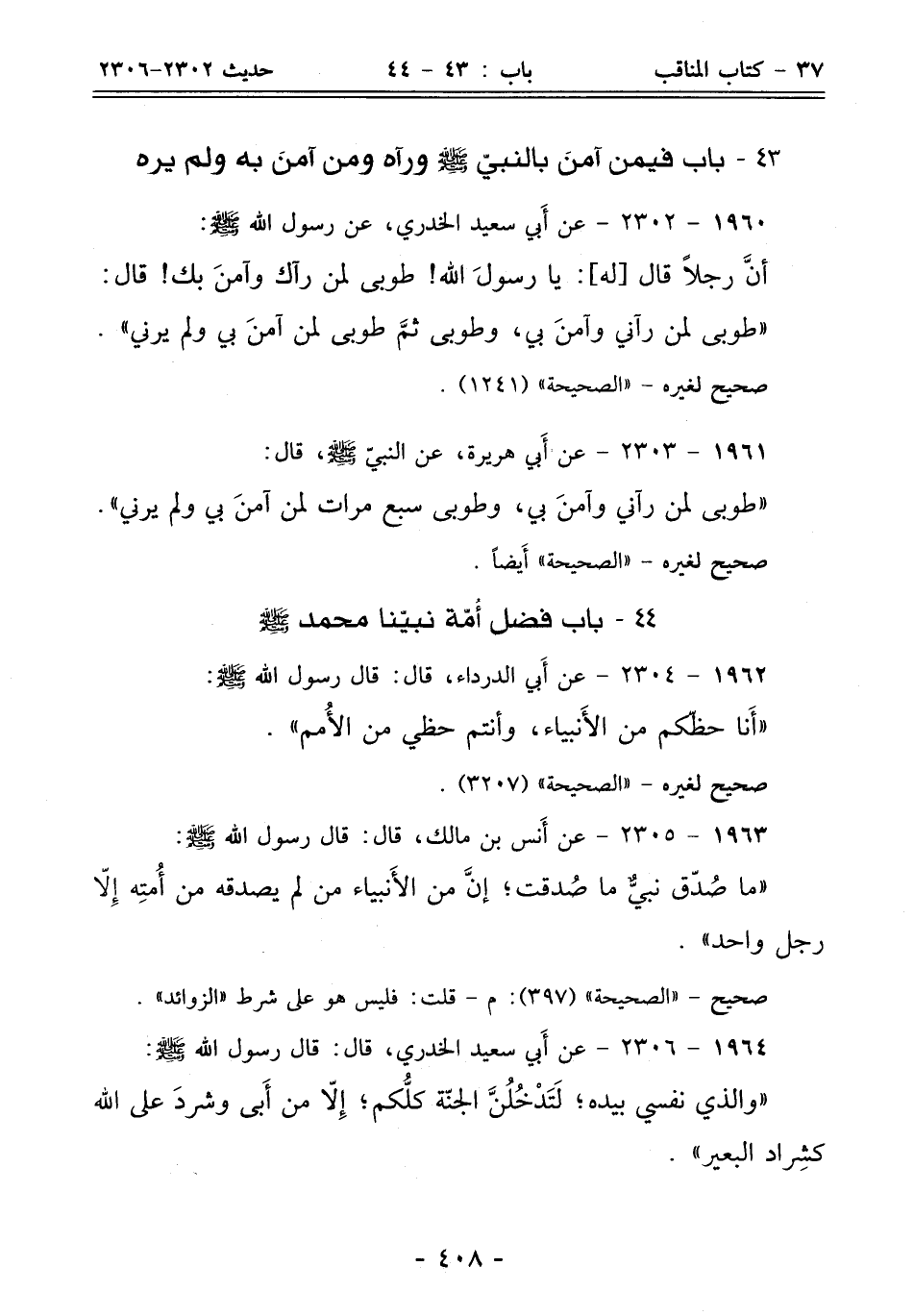 43 - باب فيمن آمنَ بالنبيّ - صلى الله عليه وسلم - ورآه ومن آمنَ به ولم يره