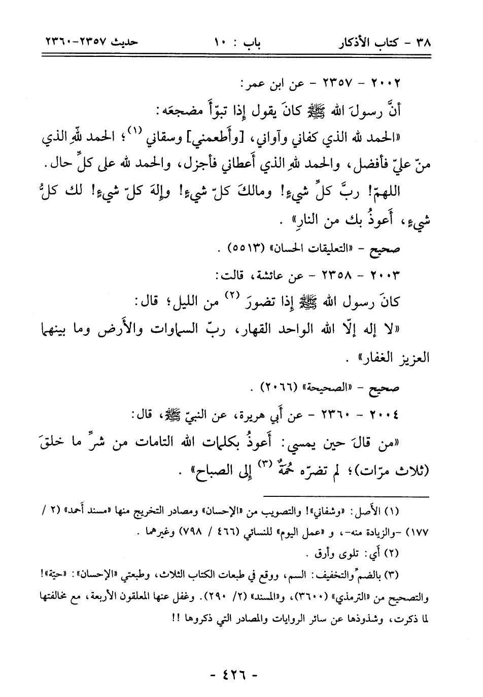 (¬1) الأَصل: "وشفاني"! والتصويب من "الإحسان" ومصادر التخريج منها "مسند أَحمد" (2/ 177) - والزيادة منه -، و"عمل اليوم" للنسائي (466/ 798) وغيرهما.