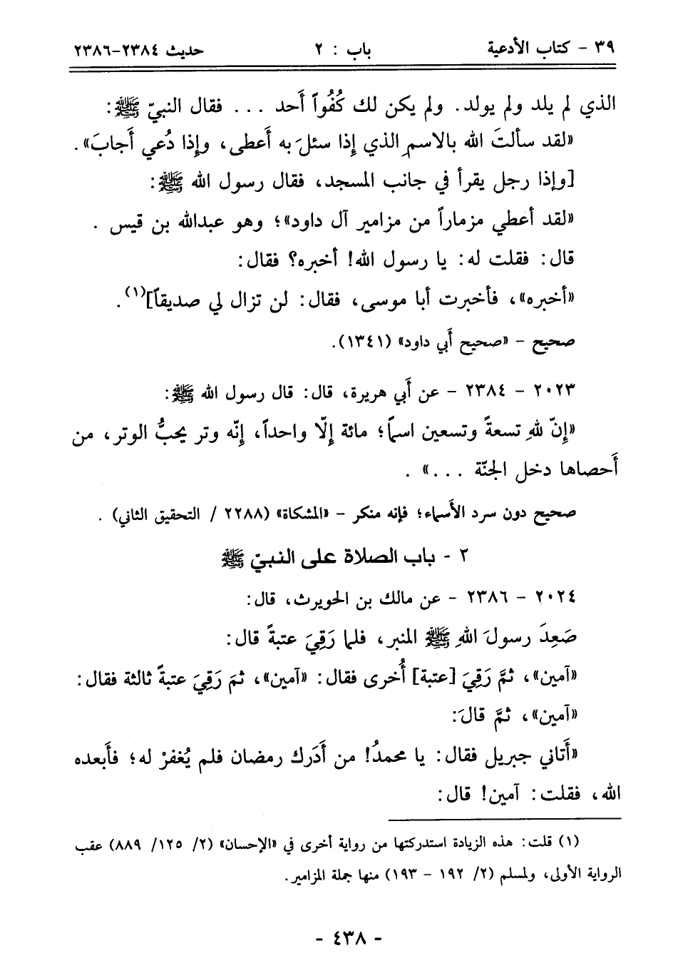 (¬1) قلت: هذه الزيادة استدركتها من رواية أخرى في "الإحسان" (2/ 125/ 889) عقب الرواية الأولى، ولمسلم (2/ 192 - 193) منها جملة المزامير.