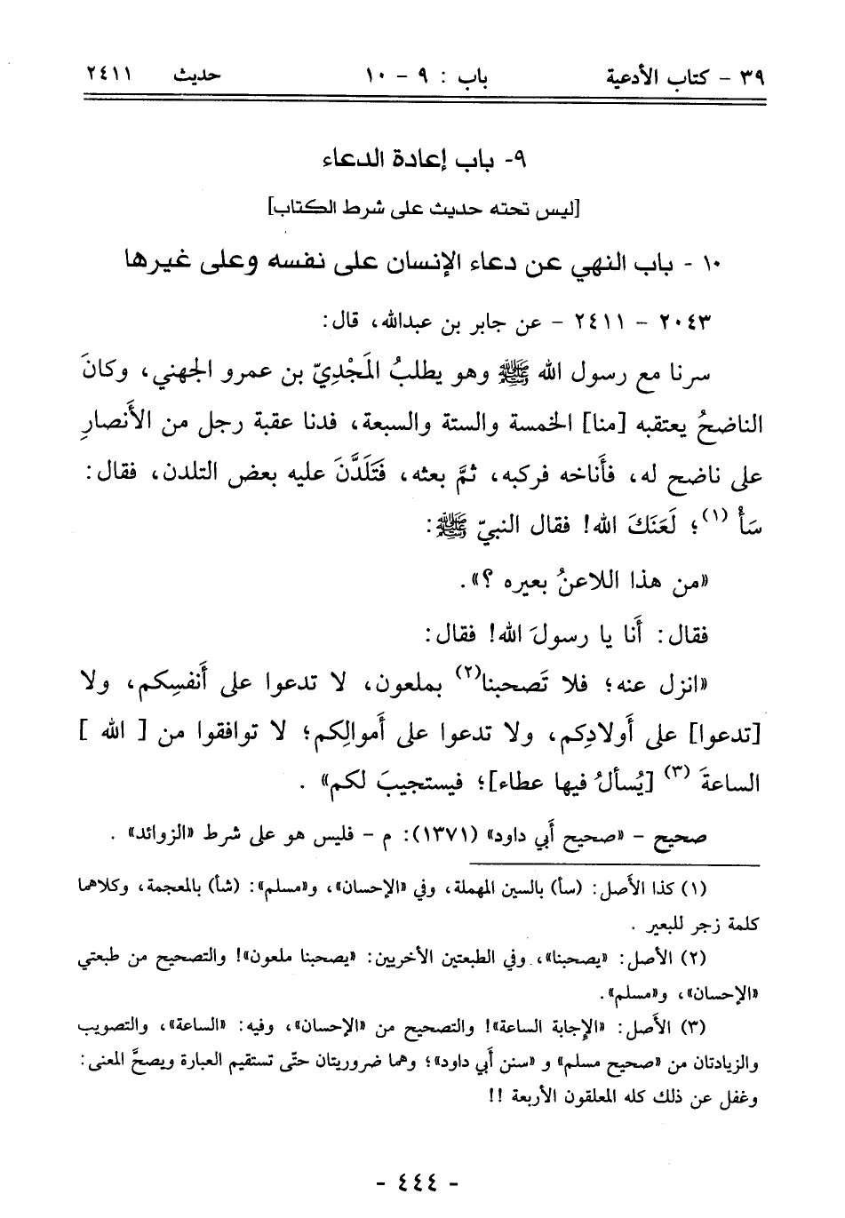 10 - باب النهي عن دعاء الإنسان على نفسه وعلى غيرها