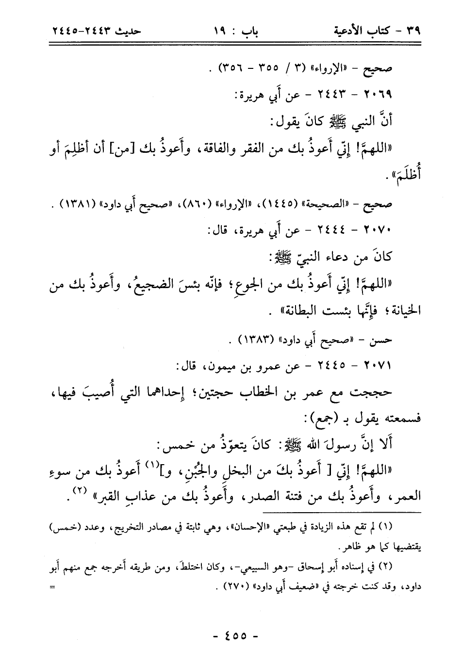 (¬1) لم تقع هذه الزيادة في طبعتي "الإحسان"، وهي ثابتة في مصادر التخريج، وعدد (خمس) يقتضيها كما هو ظاهر.