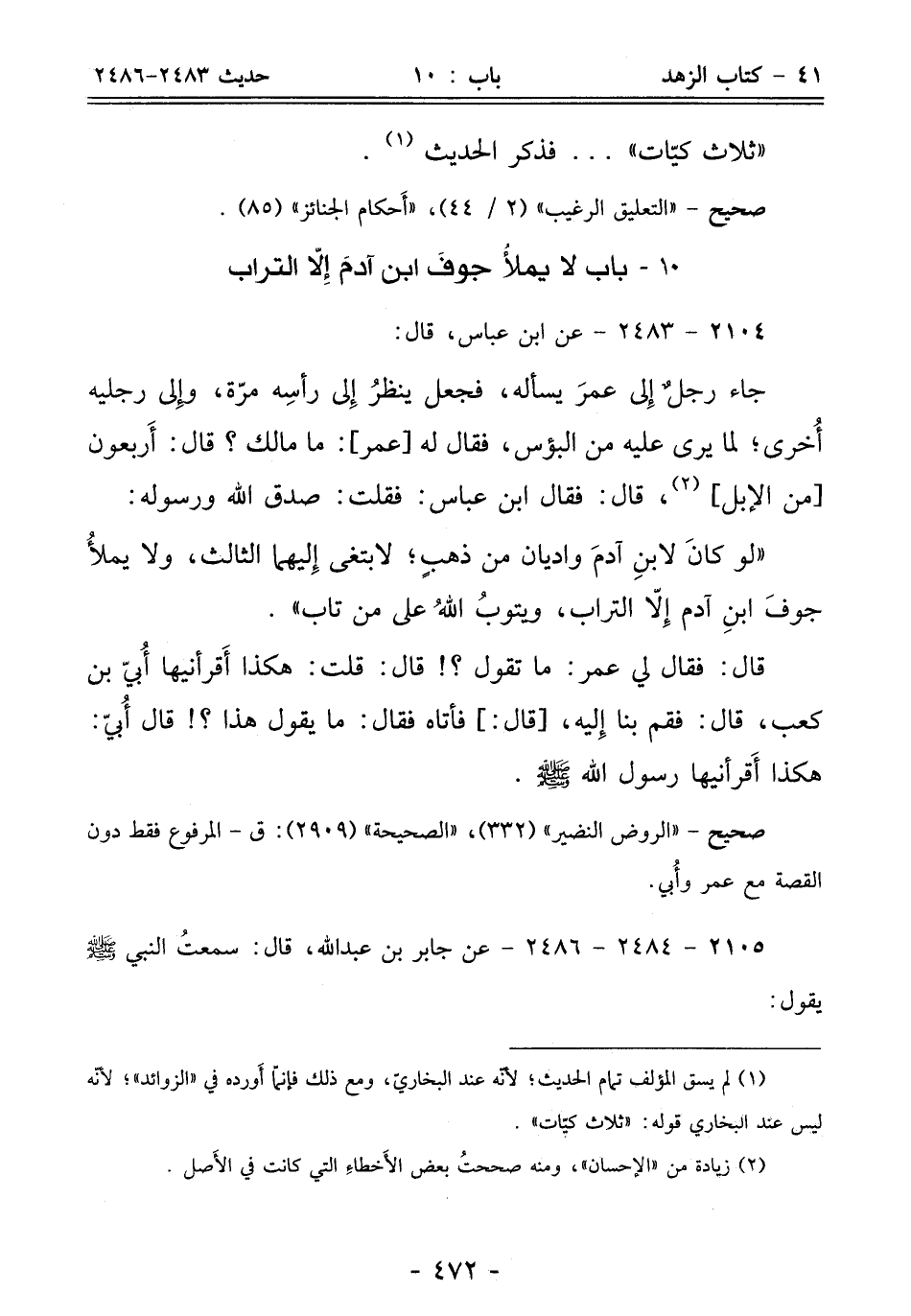 10 - باب لا يملأُ جوف ابن آدمَ إِلّا التراب