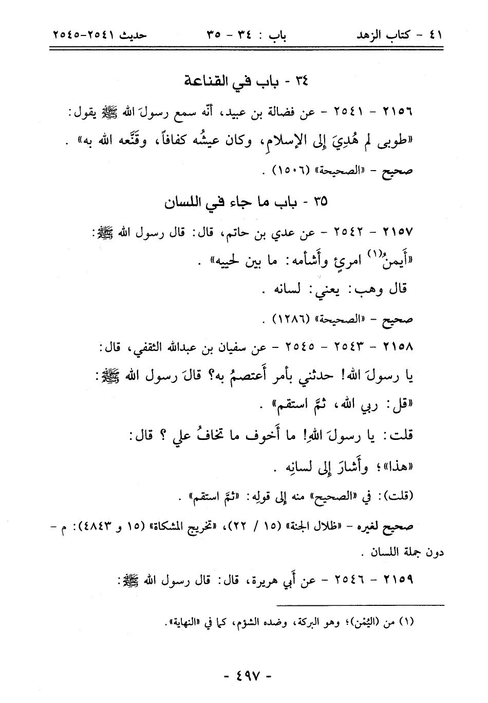 "طوبى لم هُدِيَ إِلى الإسلامِ، وكان عيشُه كفافًا، وقَنَّعه الله به".