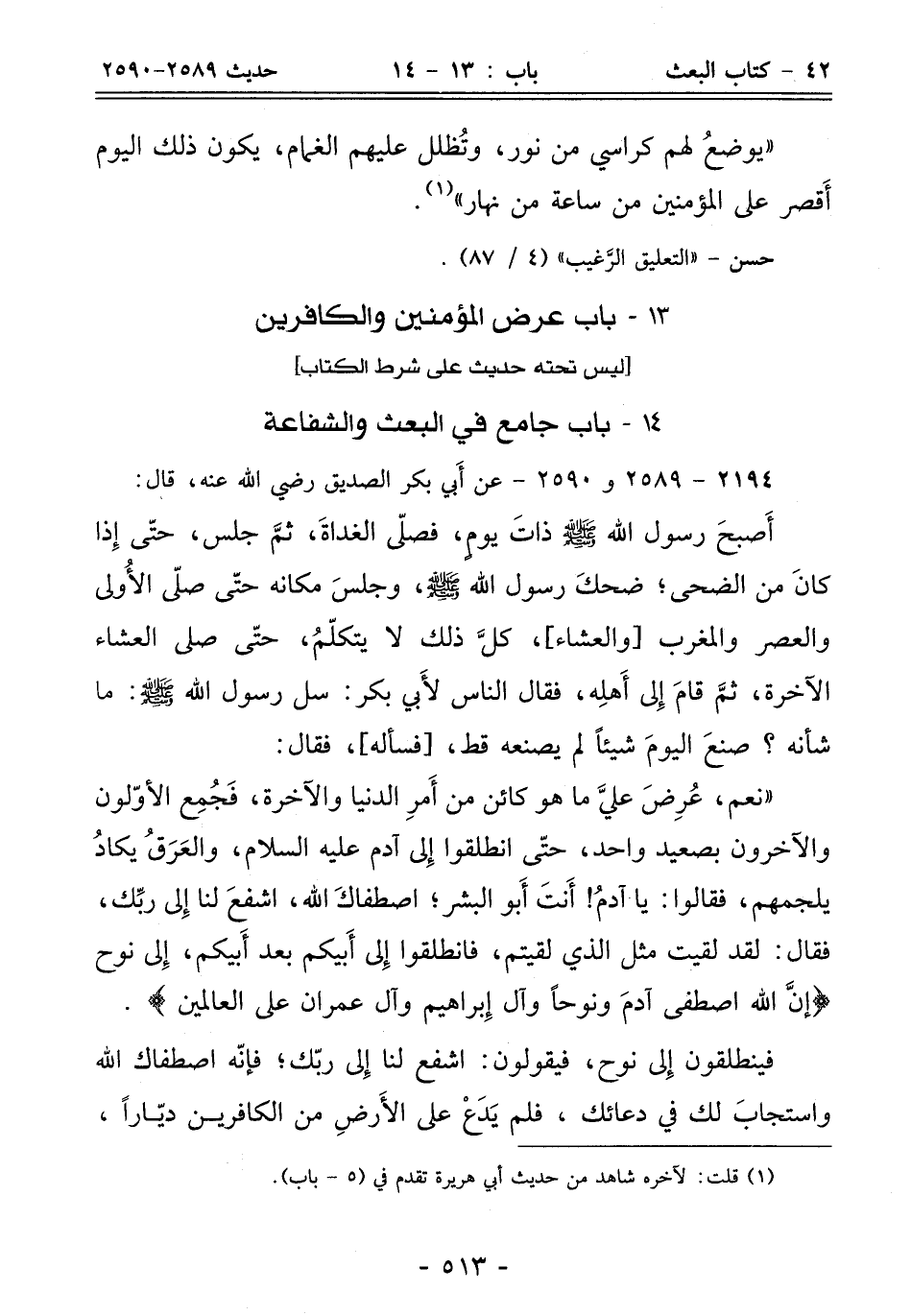 فينطلقون إِلى نوح، فيقولون: اشفع لنا إِلى ربّك؛ فإنّه اصطفاك الله واستجابَ لك في دعائك، فلم يَدَعْ على الأَرضِ من الكافرين ديّارًا،