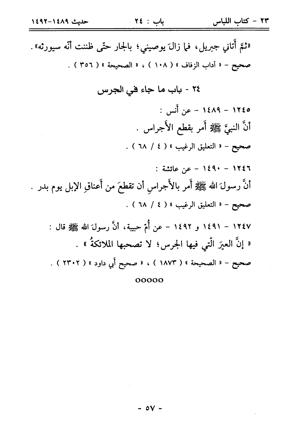 أنَّ النبيَّ - صلى الله عليه وسلم - أَمر بقطع الأَجراس.