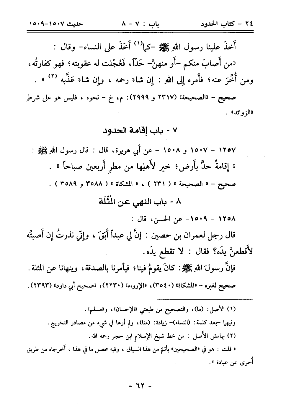 "من أَصابَ منكم - أَو منهنَّ - حَدًّا، فَعُجّلت له عقوبته؛ فهو كفارتُه، ومن أُخِّرَ عنه؛ فأَمره إلى اللهِ: إِن شاءَ رحمه، وإن شاءَ عَذَّبه (¬2) ".