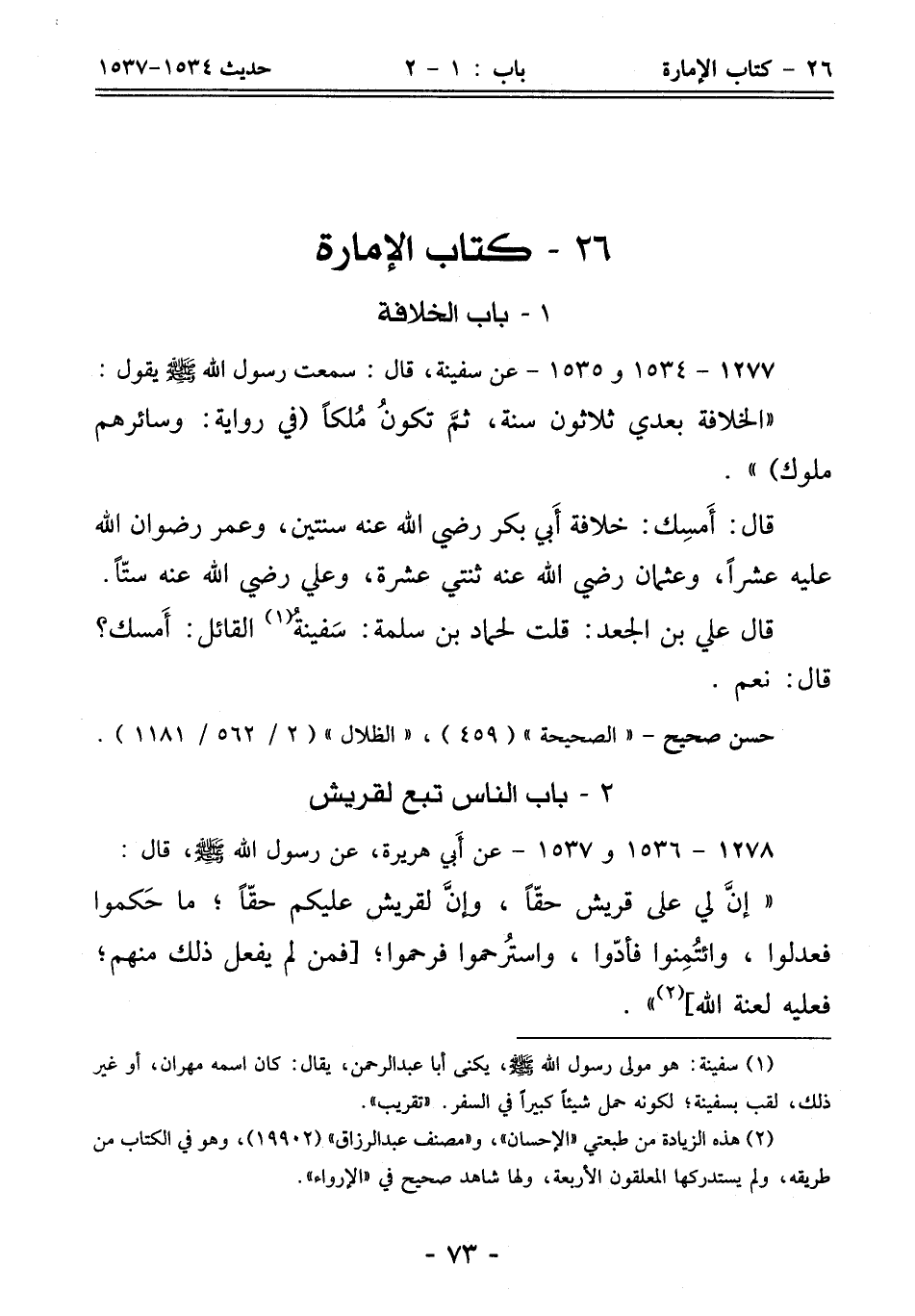 1277 - 1534 و 1535 - عن سفينة، قال: سمعت رسول الله - صلى الله عليه وسلم - يقول: