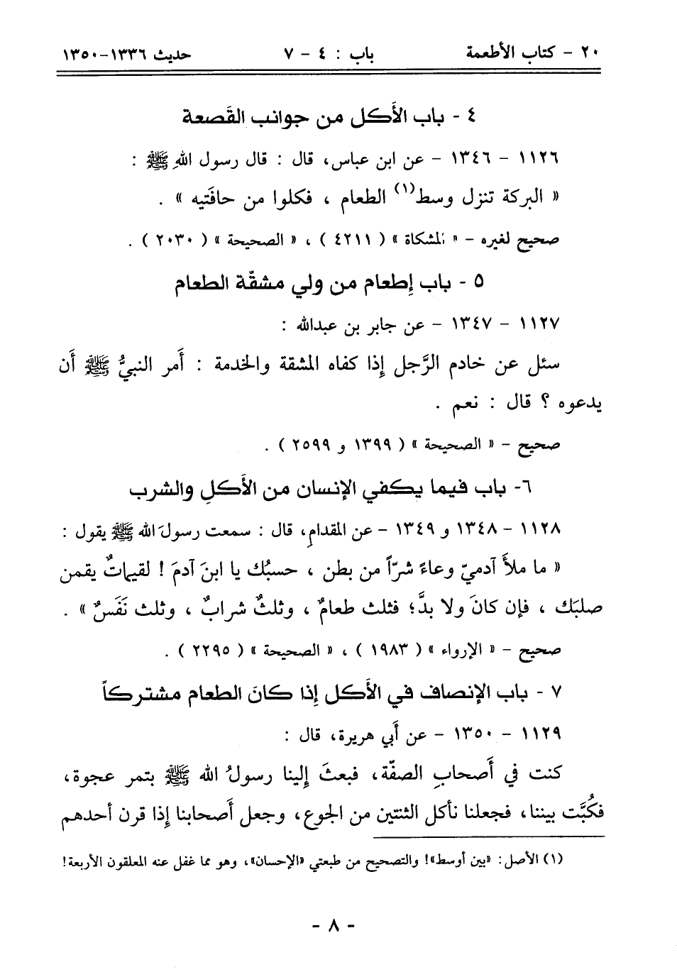 7 - باب الإنصاف في الأَكل إِذا كانَ الطعام مشتركًا