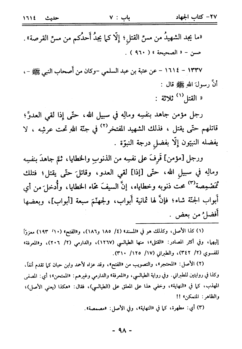 1337 - 1614 - عن عتبة بن عبد السلمي - وكان من أَصحاب النبي - صلى الله عليه وسلم -، أنَّ رسولَ اللهِ - صلى الله عليه وسلم - قال: