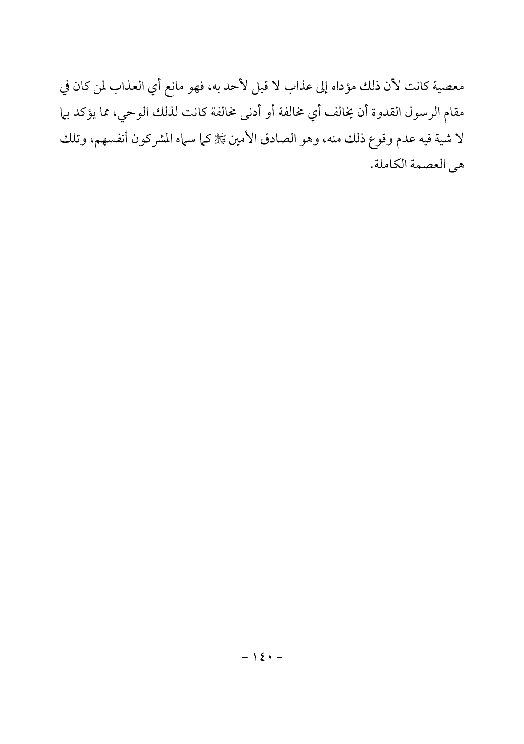 معصية كانت لأن ذلك مؤداه إلى عذاب لا قبل لأحد به، فهو مانع أي العذاب لمن كان في مقام الرسول القدوة أن يخالف أي مخالفة أو أدنى مخالفة كانت لذلك الوحي، مما يؤكد بما لا شية فيه عدم وقوع ذلك منه، وهو الصادق الأمين - صَلَّى اللَّهُ عَلَيْهِ وَسَلَّمَ - كما سماه المشركون أنفسهم، وتلك هي العصمة الكاملة.