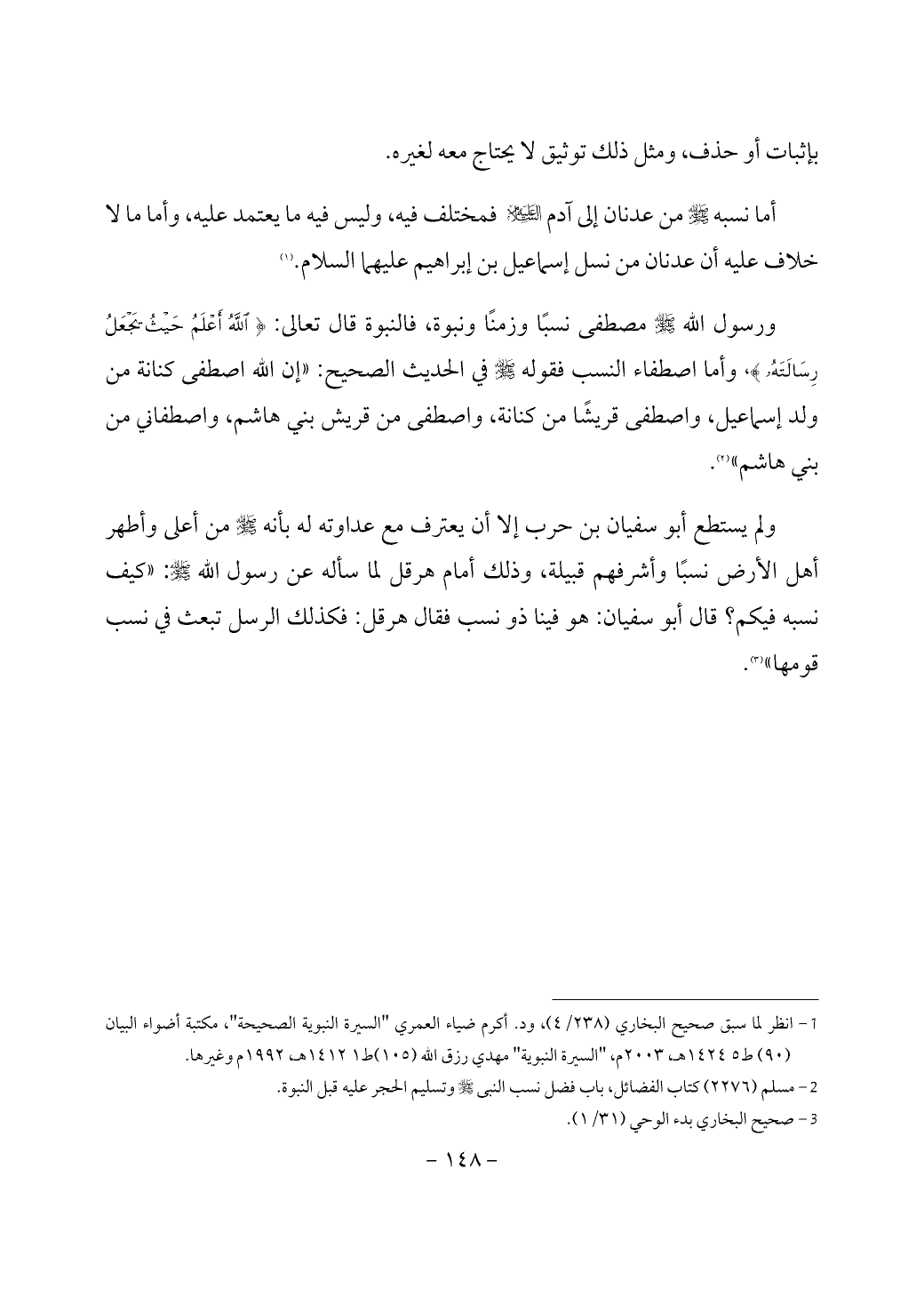(¬2) مسلم (2276) كتاب الفضائل، باب فضل نسب النبي - صَلَّى اللَّهُ عَلَيْهِ وَسَلَّمَ - وتسليم الحجر عليه قبل النبوة.