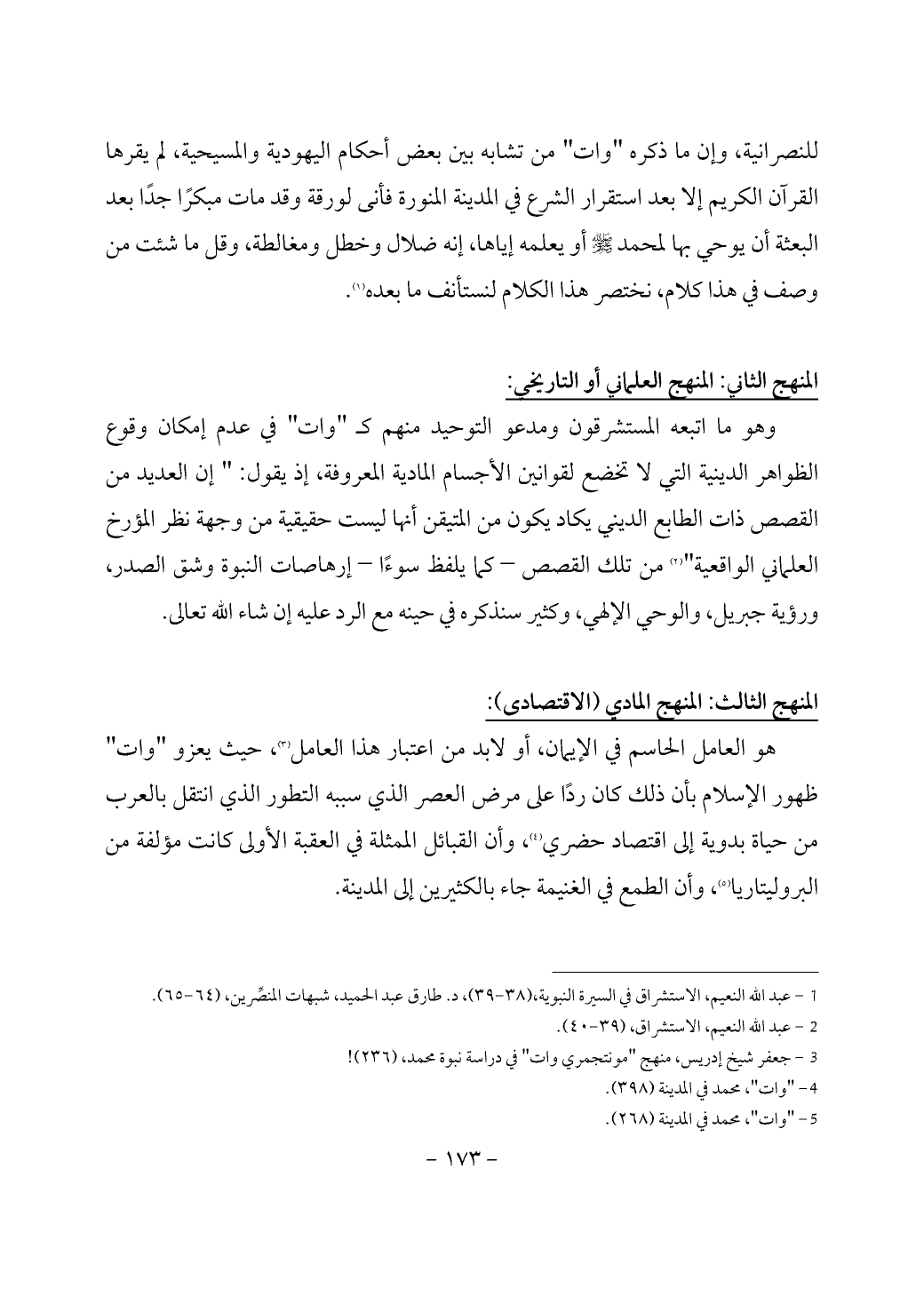 (¬3) جعفر شيخ إدريس، منهج "مونتجمري وات" في دراسة نبوة محمد، (236)!.