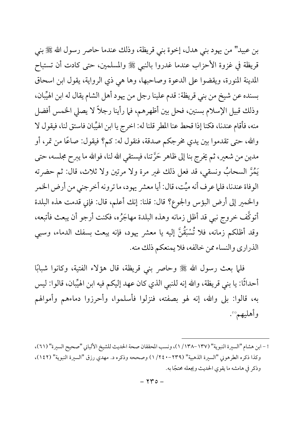 (¬1) ابن هشام "السيرة النبوية" (137 - 138/ 1)، ونسب المحققان صحة الحديث للشيخ الألباني "صحيح السيرة" (61)، وكذا ذكره الطرهوني "السيرة الذهبية" (239 - 240/ 1) وصححه وذكره د. مهدي رزق "السيرة النبوية" (142)، وذكر في هامشه ما يقوي الحديث ويجعله محتجًا به.