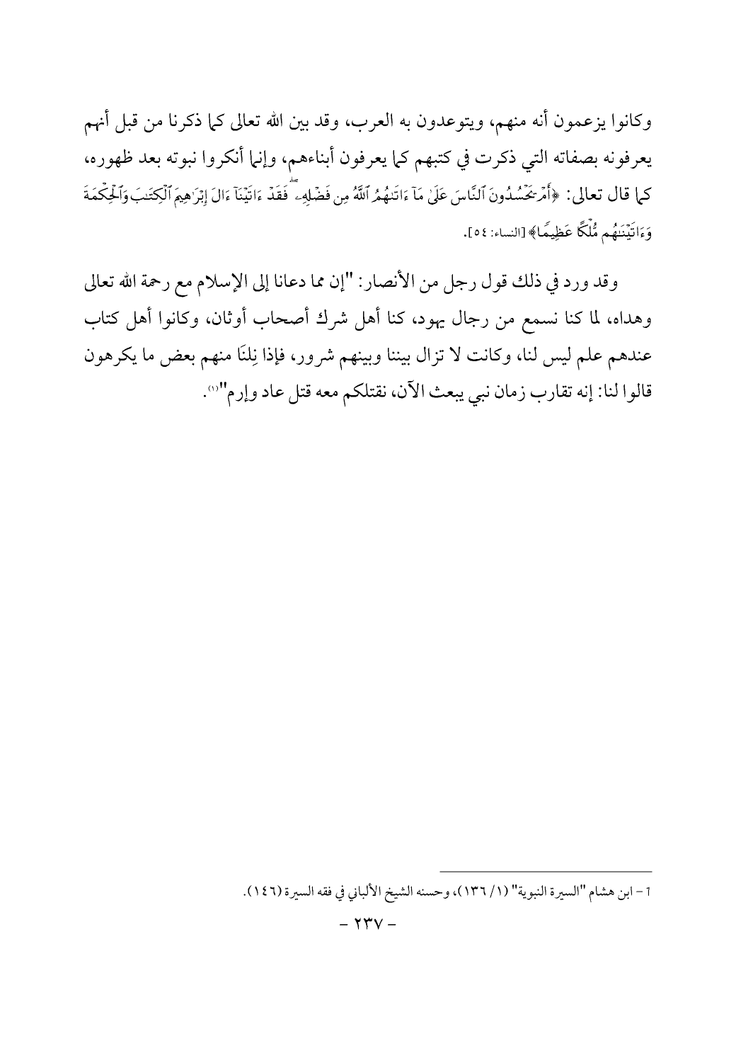 (¬1) ابن هشام "السيرة النبوية" (1/ 136)، وحسنه الشيخ الألباني في فقه السيرة (146).
