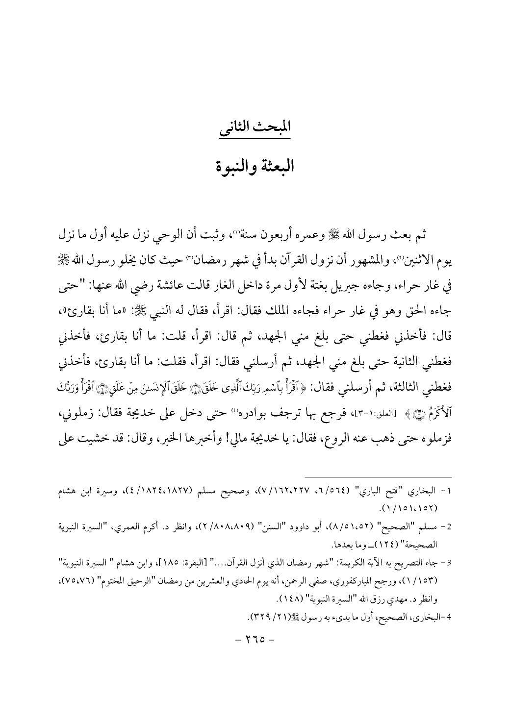 (¬3) جاء التصريح به الآية الكريمة: "شهر رمضان الذي أنزل القرآن .... " [البقرة: 185]، وابن هشام " السيرة النبوية" (153/ 1)، ورجح المباركفوري، صفي الرحمن، أنه يوم الحادي والعشرين من رمضان "الرحيق المختوم" (75، 76)، وانظر د. مهدي رزق الله "السيرة النبوية" (148).