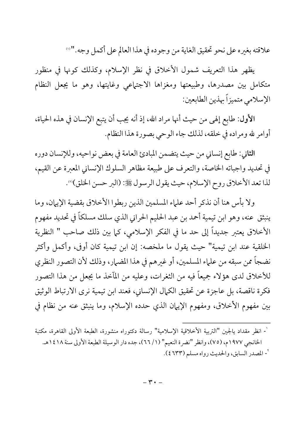 (¬1) انظر مقداد يالجين "التربية الأخلاقية الإسلامية" رسالة دكتوراه منشورة، الطبعة الأولى القاهرة، مكتبة الخانجي 1977 م، (75)، وانظر "نضرة النعيم" (1/ 66)، جده دار الوسيلة الطبعة الأولى سنة 1418 هـ.