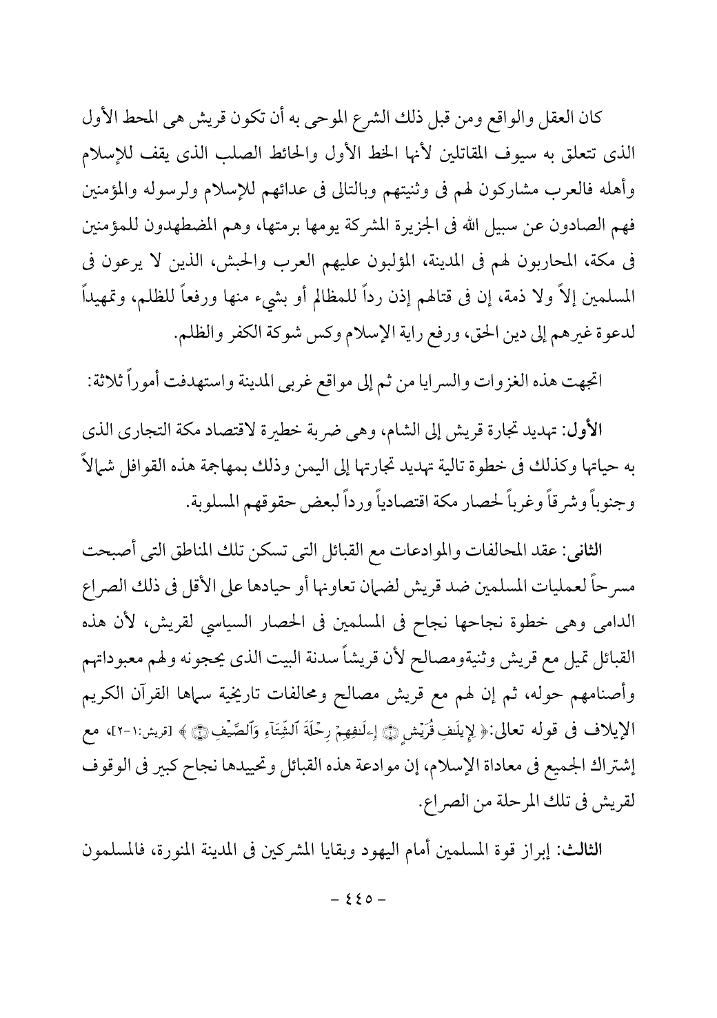 كان العقل والواقع ومن قبل ذلك الشرع الموحى به أن تكون قريش هي المحط الأول الذى تتعلق به سيوف المقاتلين لأنها الخط الأول والحائط الصلب الذى يقف للإسلام وأهله فالعرب مشاركون لهم في وثنيتهم وبالتالى في عدائهم للإسلام ولرسوله والمؤمنين فهم الصادون عن سبيل الله في الجزيرة المشركة يومها برمتها، وهم المضطهدون للمؤمنين في مكة، المحاربون لهم في المدينة، المؤلبون عليهم العرب والحبش، الذين لا يرعون في المسلمين إلاً ولا ذمة، إن في قتالهم إذن رداً للمظالم أو بشيء منها ورفعاً للظلم، وتمهيداً لدعوة غيرهم إلى دين الحق، ورفع راية الإسلام وكس شوكة الكفر والظلم.