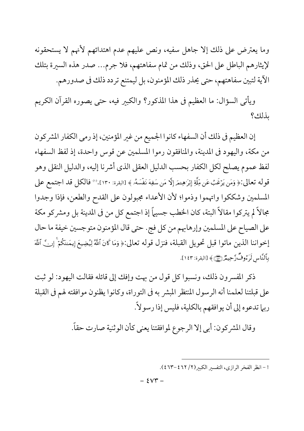 (¬1) انظر الفخر الرازى، التفسير الكبير (2/ 462 - 463).