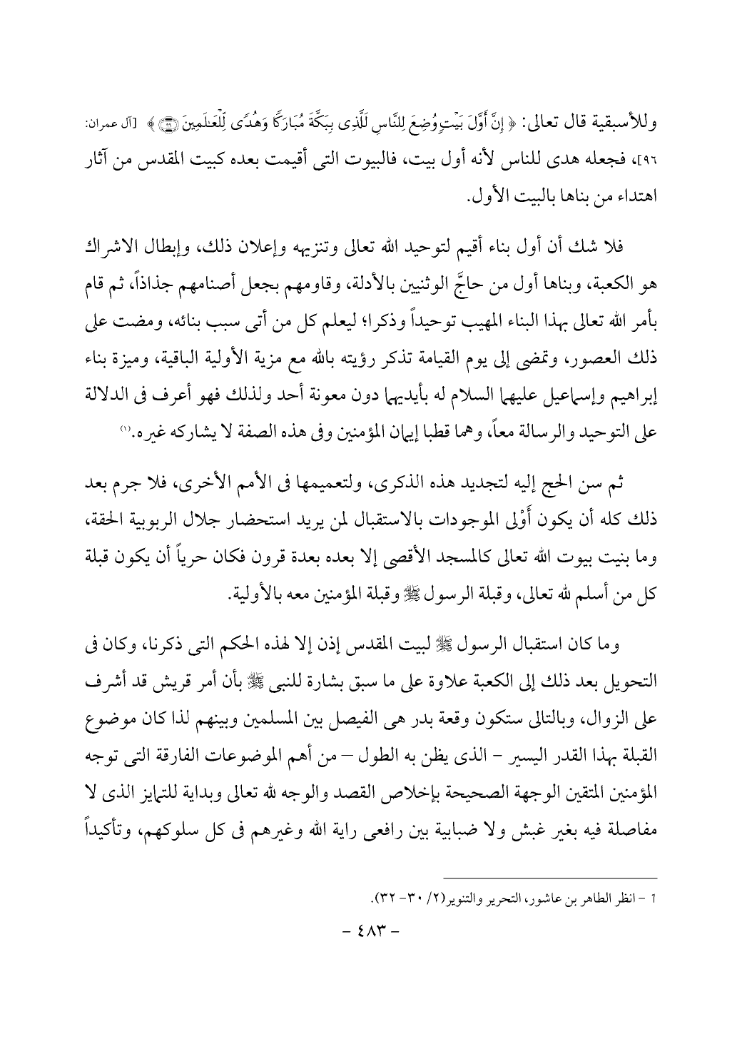(¬1) انظر الطاهر بن عاشور، التحرير والتنوير (2/ 30 - 32).