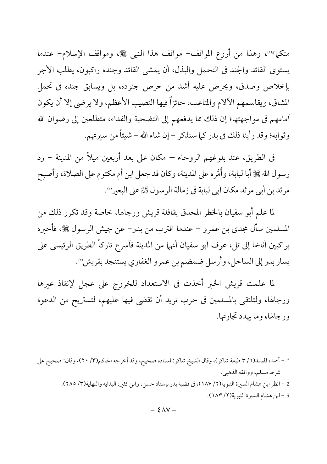 (¬2) انظر ابن هشام السيرة النبوية (2/ 187)، في قضية بدر بإسناد حسن، وابن كثير، البداية والنهاية (3/ 285).