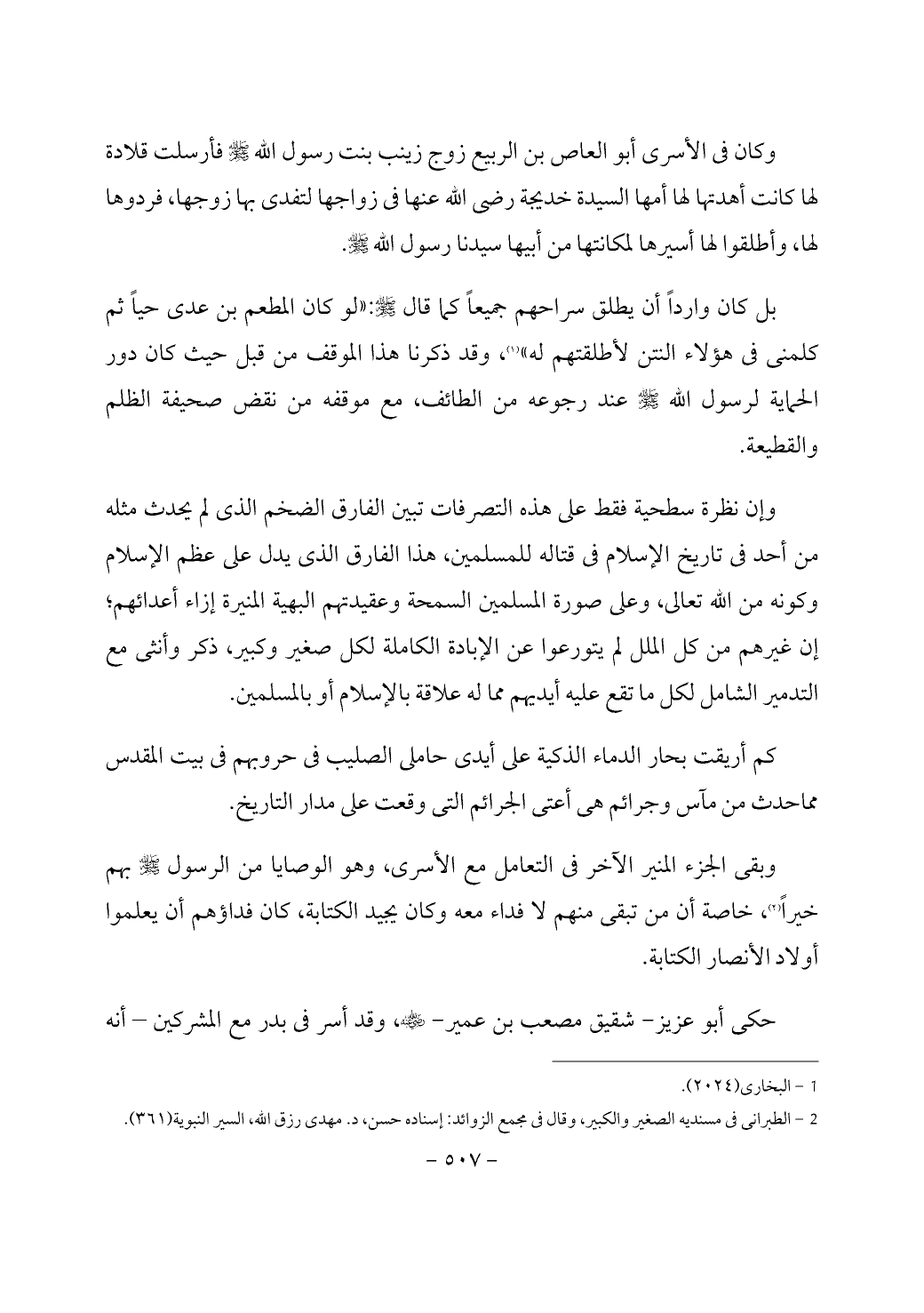 (¬2) الطبرانى في مسنديه الصغير والكبير، وقال في مجمع الزوائد: إسناده حسن، د. مهدى رزق الله، السير النبوية (361).