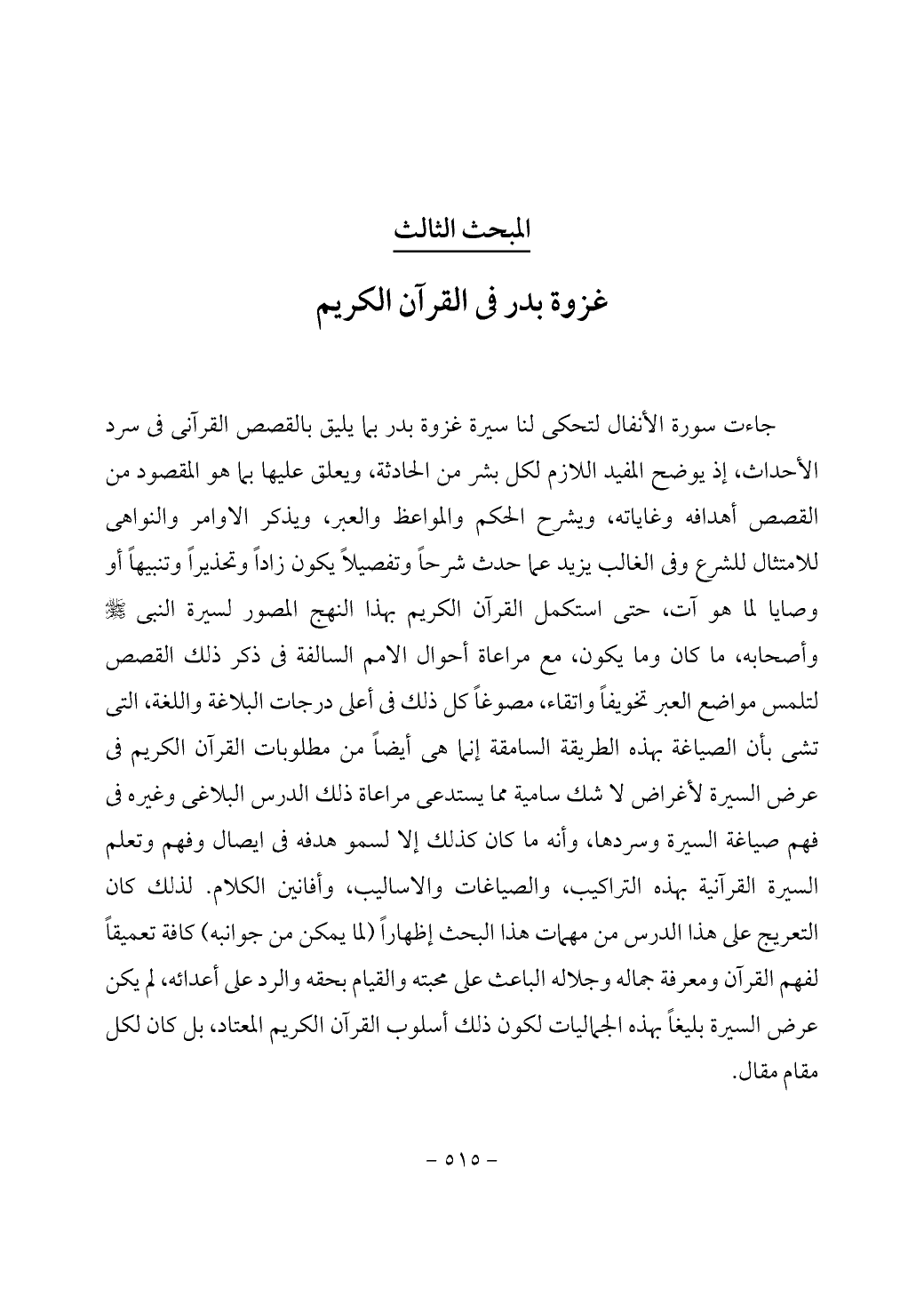 جاءت سورة الأنفال لتحكى لنا سيرة غزوة بدر بما يليق بالقصص القرآنى في سرد الأحداث، إذ يوضح المفيد اللازم لكل بشر من الحادثة، ويعلق عليها بما هو المقصود من القصص أهدافه وغاياته، ويشرح الحكم والمواعظ والعبر، ويذكر الاوامر والنواهى للامتثال للشرع وفي الغالب يزيد عما حدث شرحاً وتفصيلاً يكون زاداً وتحذيراً وتنبيهاً أو وصايا لما هو آت، حتى استكمل القرآن الكريم بهذا النهج المصور لسيرة النبي - صَلَّى اللَّهُ عَلَيْهِ وَسَلَّمَ - وأصحابه، ما كان وما يكون، مع مراعاة أحوال الامم السالفة في ذكر ذلك القصص لتلمس مواضع العبر تخويفاً واتقاء، مصوغاً كل ذلك في أعلى درجات البلاغة واللغة، التى تشى بأن الصياغة بهذه الطريقة السامقة إنما هي أيضاً من مطلوبات القرآن الكريم في عرض السيرة لأغراض لا شك سامية مما يستدعى مراعاة ذلك الدرس البلاغى وغيره في فهم صياغة السيرة وسردها، وأنه ما كان كذلك إلا لسمو هدفه في ايصال وفهم وتعلم السيرة القرآنية بهذه التراكيب، والصياغات والاساليب، وأفانين الكلام. لذلك كان التعريج على هذا الدرس من مهمات هذا البحث إظهاراً (لما يمكن من جوانبه) كافة تعميقاً لفهم القرآن ومعرفة جماله وجلاله الباعث على محبته والقيام بحقه والرد على أعدائه، لم يكن عرض السيرة بليغاً بهذه الجماليات لكون ذلك أسلوب القرآن الكريم المعتاد، بل كان لكل مقام مقال.