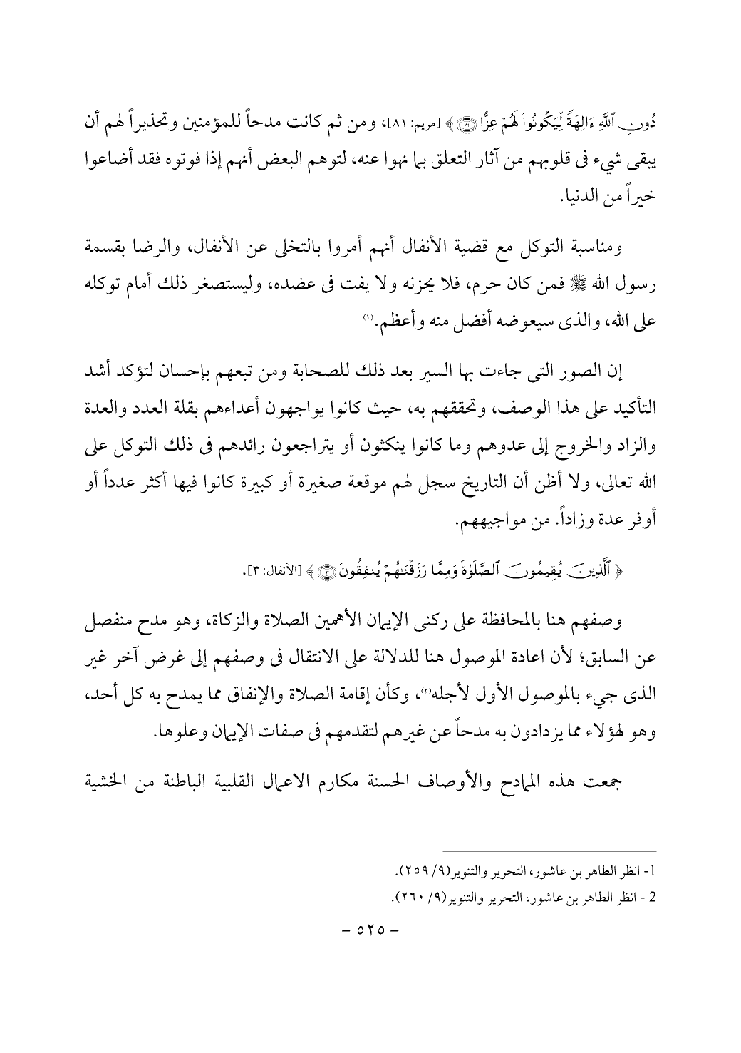 (¬2) انظر الطاهر بن عاشور، التحرير والتنوير (9/ 260).