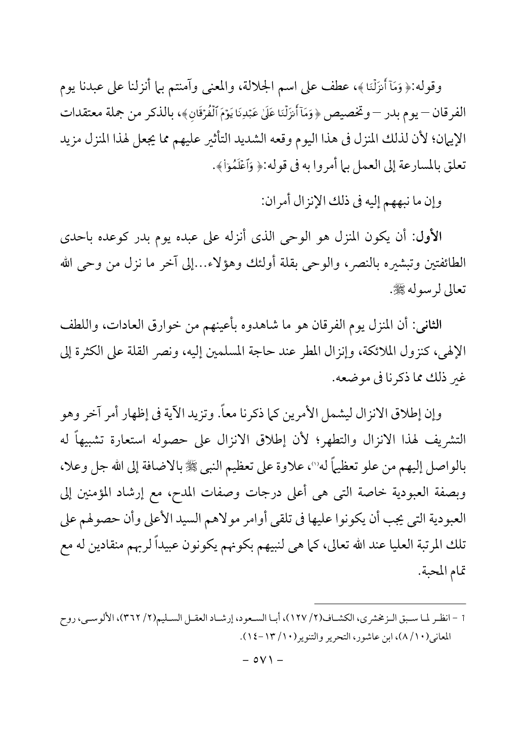 (¬1) انظر لما سبق الزمخشرى، الكشاف (2/ 127)، أبا السعود، إرشاد العقل السليم (2/ 362)، الألوسى، روح المعانى (10/ 8)، ابن عاشور، التحرير والتنوير (10/ 13 - 14).