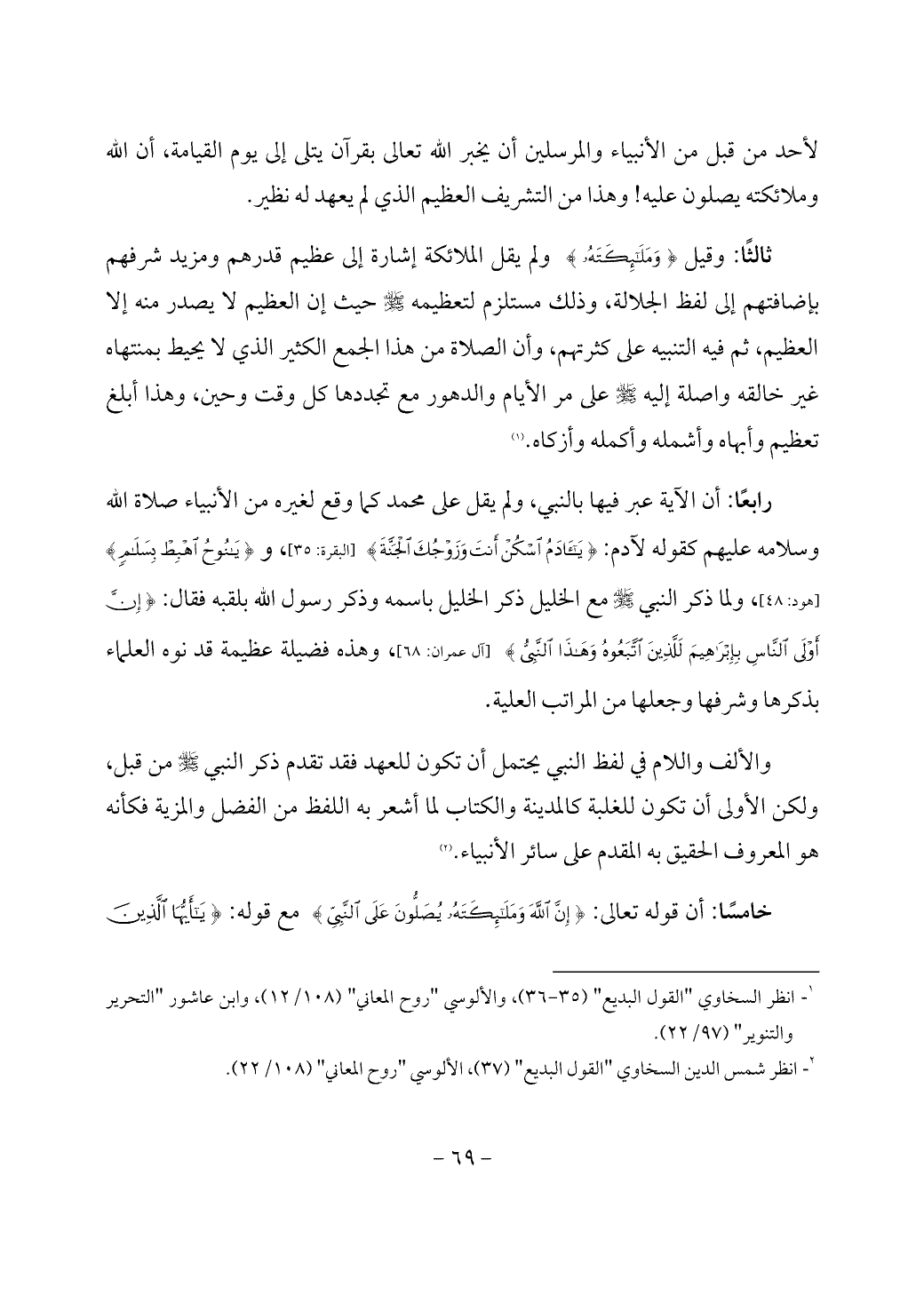 (¬1) انظر السخاوي "القول البديع" (35 - 36)، والألوسي "روح المعاني" (108/ 12)، وابن عاشور "التحرير والتنوير" (97/ 22).