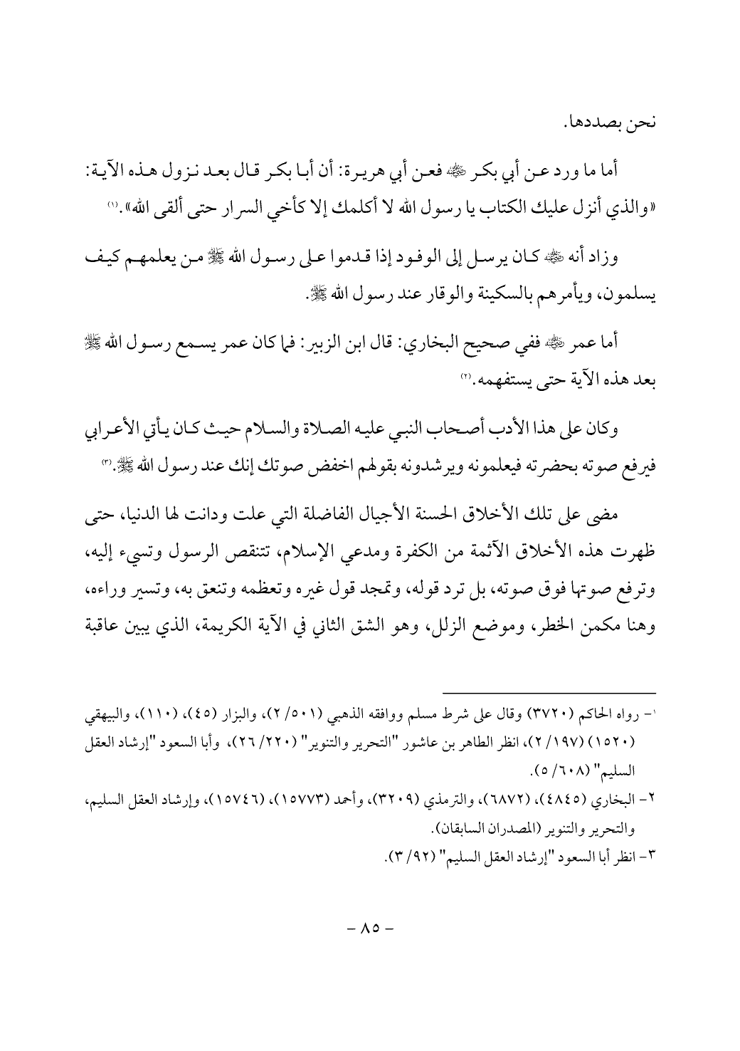(¬1) رواه الحاكم (3720) وقال على شرط مسلم ووافقه الذهبي (501/ 2)، والبزار (45)، (110)، والبيهقي (1520) (197/ 2)، انظر الطاهر بن عاشور "التحرير والتنوير" (220/ 26)، وأبا السعود "إرشاد العقل السليم" (608/ 5).