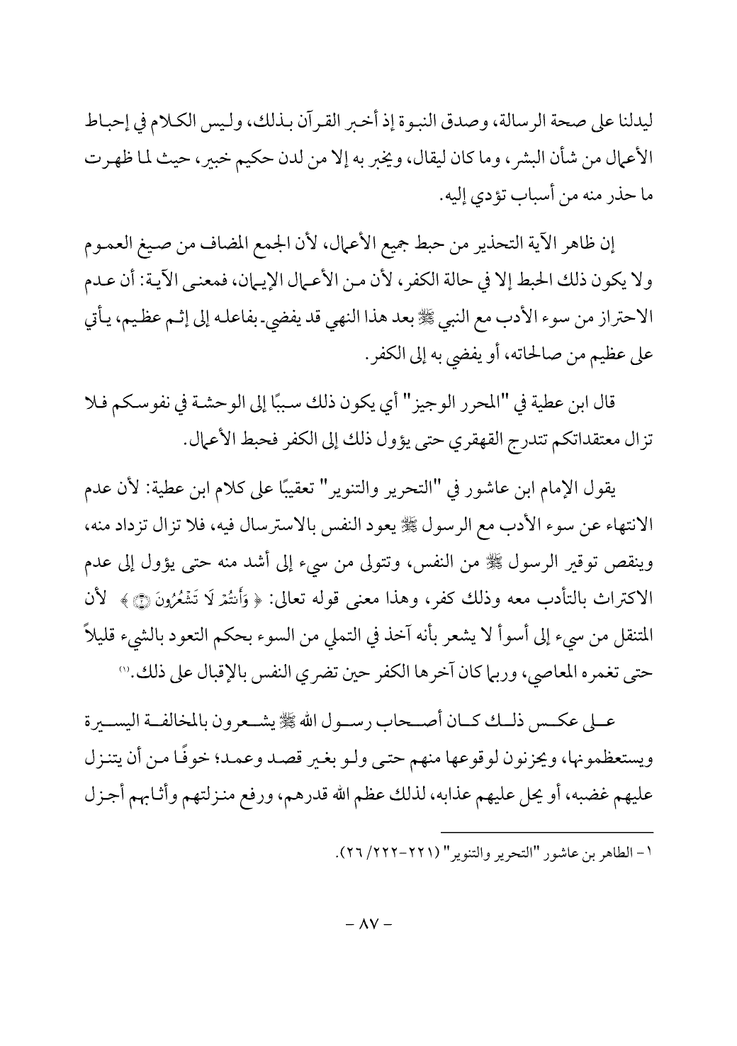 (¬1) الطاهر بن عاشور "التحرير والتنوير" (221 - 222/ 26).