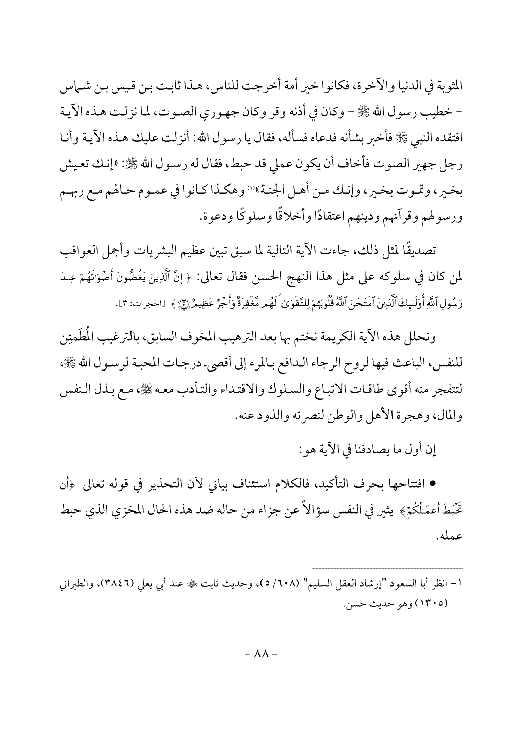 (¬1) انظر أبا السعود "إرشاد العقل السليم" (608/ 5)، وحديث ثابت - رضي الله عنه - عند أبي يعلي (3846)، والطبراني (1305) وهو حديث حسن.