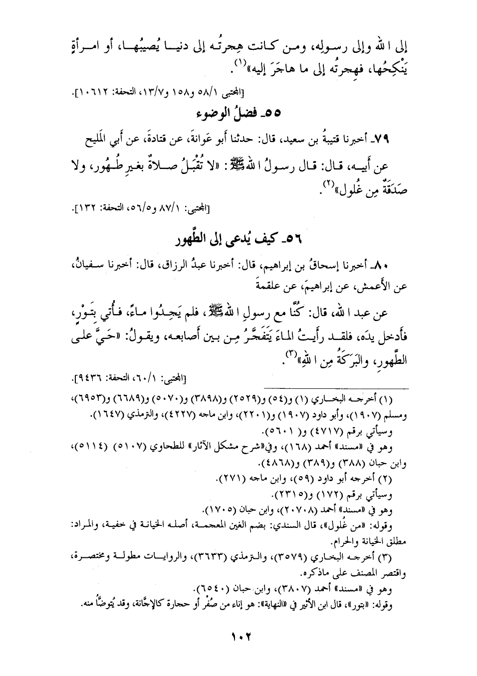 79 - أَخْبَرَنَا قُتَيْبَةُ بْنُ سَعِيدٍ، قَالَ: حَدَّثَنَا أَبُو عَوَانَةَ، عَنْ قَتَادَةَ، عَنْ أَبِي الْمَلِيحِ، عَنْ أَبِيهِ، قَالَ: قَالَ رَسُولُ اللهِ صَلَّى اللهُ عَلَيْهِ وَسَلَّمَ: «§لَا تُقْبَلُ صَلَاةٌ بِغَيْرِ طُهُورٍ، وَلَا صَدَقَةٌ مِنْ غُلُولٍ»