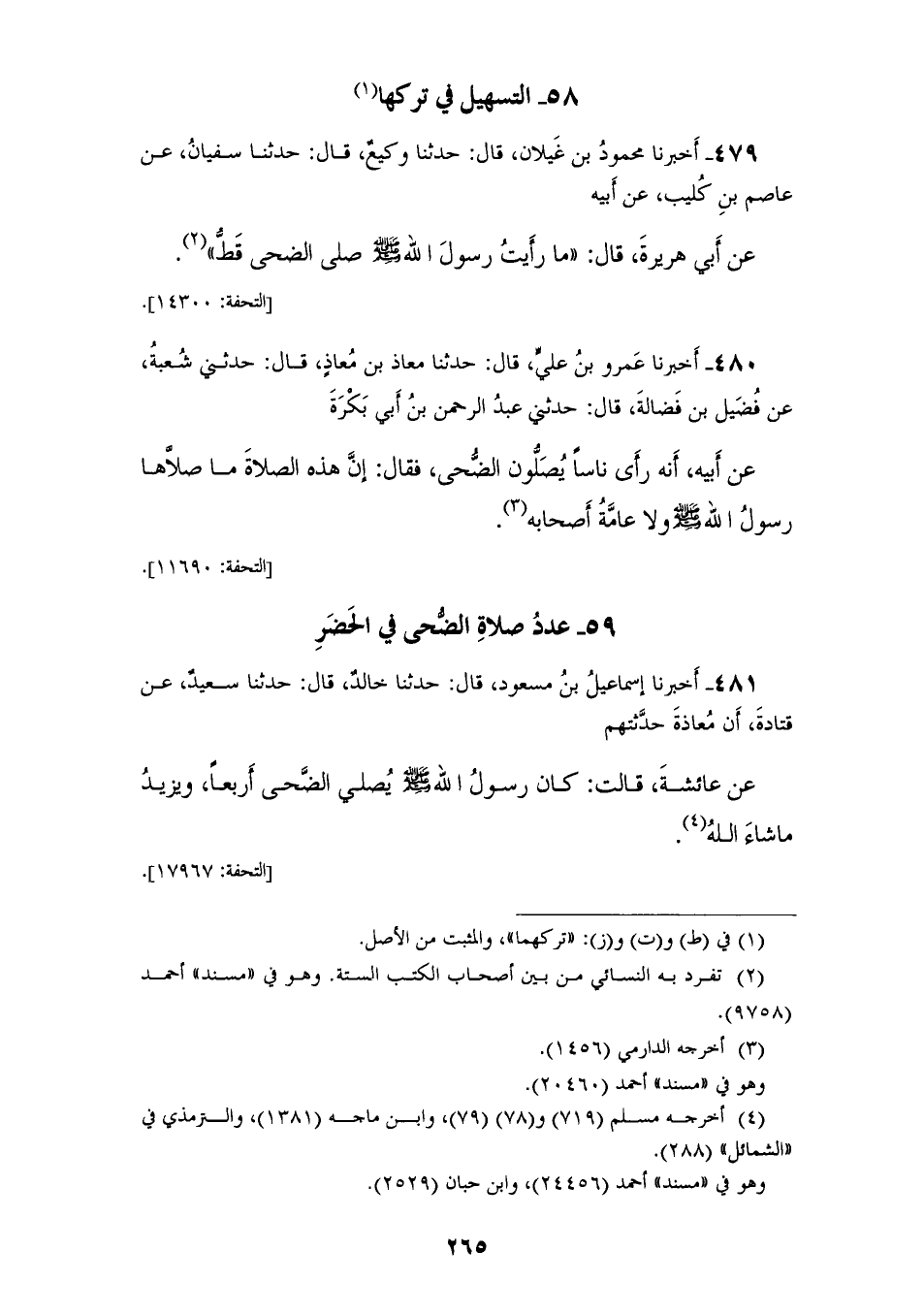 480 - أَخْبَرَنَا عَمْرُو بْنُ عَلِيٍّ، قَالَ: حَدَّثَنَا مُعَاذُ بْنُ مُعَاذٍ، قَالَ: حَدَّثَنِي شُعْبَةُ، عَنْ فُضَيْلِ بْنِ فَضَالَةَ، قَالَ: حَدَّثَنِي عَبْدُ الرَّحْمَنِ بْنُ أَبِي بَكْرَةَ، عَنْ أَبِيهِ، أَنَّهُ: رَأَى نَاسًا يُصَلُّونَ الضُّحَى، فَقَالَ: إِنَّ «§هَذِهِ الصَّلَاةَ مَا صَلَّاهَا رَسُولُ اللهِ صَلَّى اللهُ عَلَيْهِ وَسَلَّمَ، وَلَا عَامَّةُ أَصْحَابُهُ»