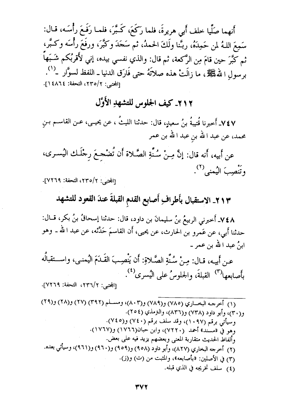 §الِاسْتِقْبَالُ بِأَطْرَافِ أَصَابِعِ الْقَدَمِ الْقِبْلَةَ عِنْدَ الْقُعُودِ لِلتَّشَهُّدِ