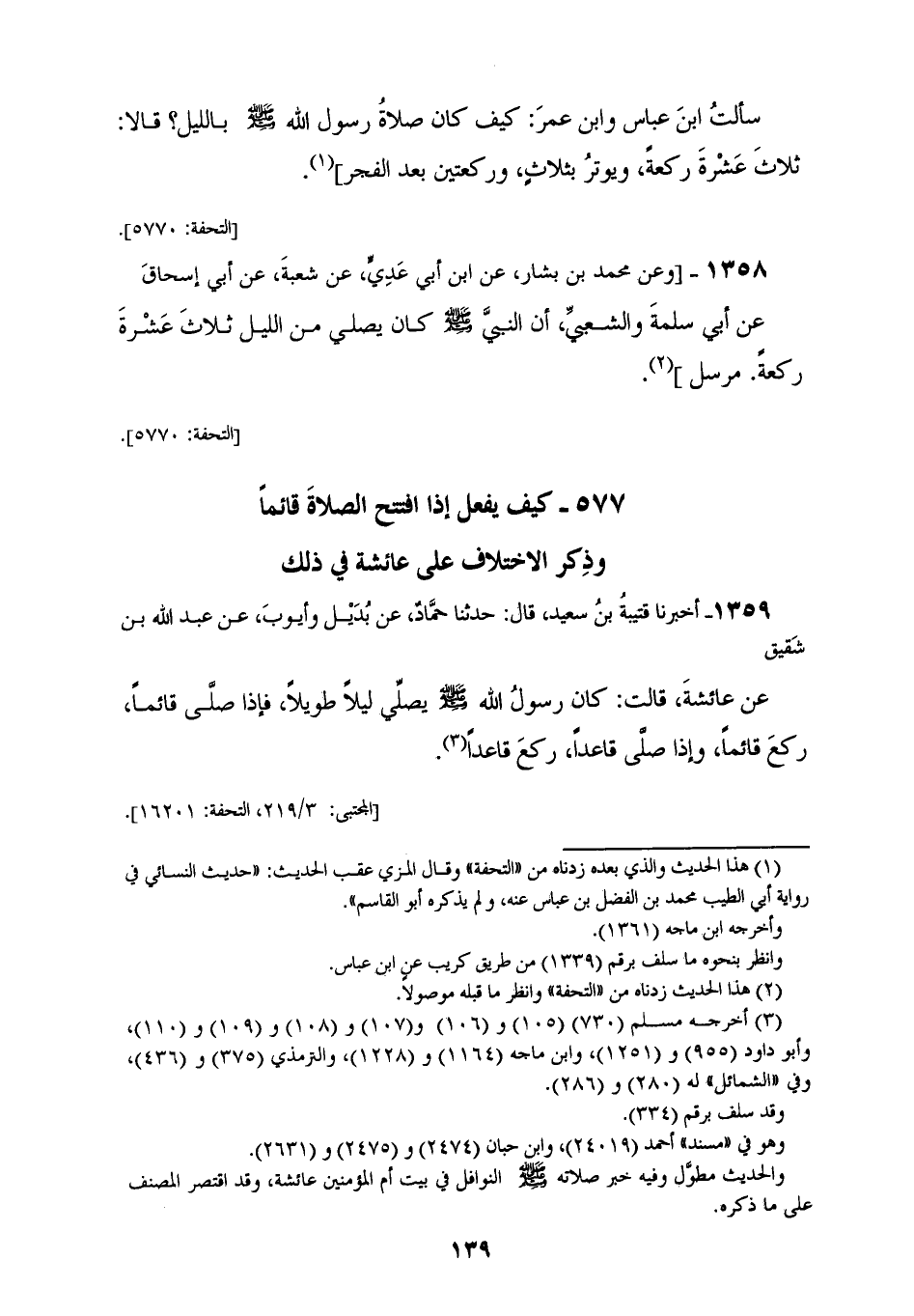 1358 - وَعَنْ مُحَمَدِ بْنِ بَشَّارٍ، عَنْ ابْنِ أَبِي عَدِيٍ، عَنْ شُعْبَةَ، عَنْ أَبِي إِسْحَاقَ، عَنْ أَبِي سَلَمَةَ وَالشَّعْبِيِّ أَنَّ النَّبِيَّ صَلَّى اللهُ عَلَيْهِ وَسَلَّمَ كَانَ «§يُصَلِّي مِنَ اللَّيْلِ ثَلَاثَ عَشْرَةَ رَكْعَةً» مُرْسَلٌ