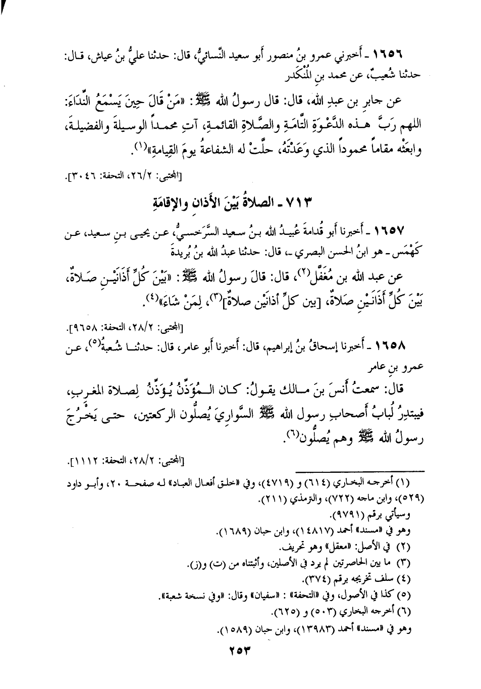 1658 - أَخْبَرَنَا إِسْحَاقُ بْنُ إِبْرَاهِيمَ، قَالَ: أَخْبَرَنَا أَبُو عَامِرٍ، قَالَ: حَدَّثَنَا شُعْبَةُ، عَنْ عَمْرِو بْنِ عَامِرٍ، قَالَ: سَمِعْتُ أَنَسَ بْنَ مَالِكٍ، يَقُولُ: «كَانَ الْمُؤَذِّنُ §يُؤَذِّنُ لِصَلَاةِ الْمَغْرِبِ فَيَبْتَدِرُ لُبَابُ أَصْحَابِ رَسُولِ اللهِ صَلَّى اللهُ عَلَيْهِ وَسَلَّمَ السَّوَارِيَ يُصَلُّونَ الرَّكْعَتَيْنِ، حَتَّى يَخْرُجَ رَسُولُ اللهِ صَلَّى اللهُ عَلَيْهِ وَسَلَّمَ وَهُمْ يُصَلُّونَ»