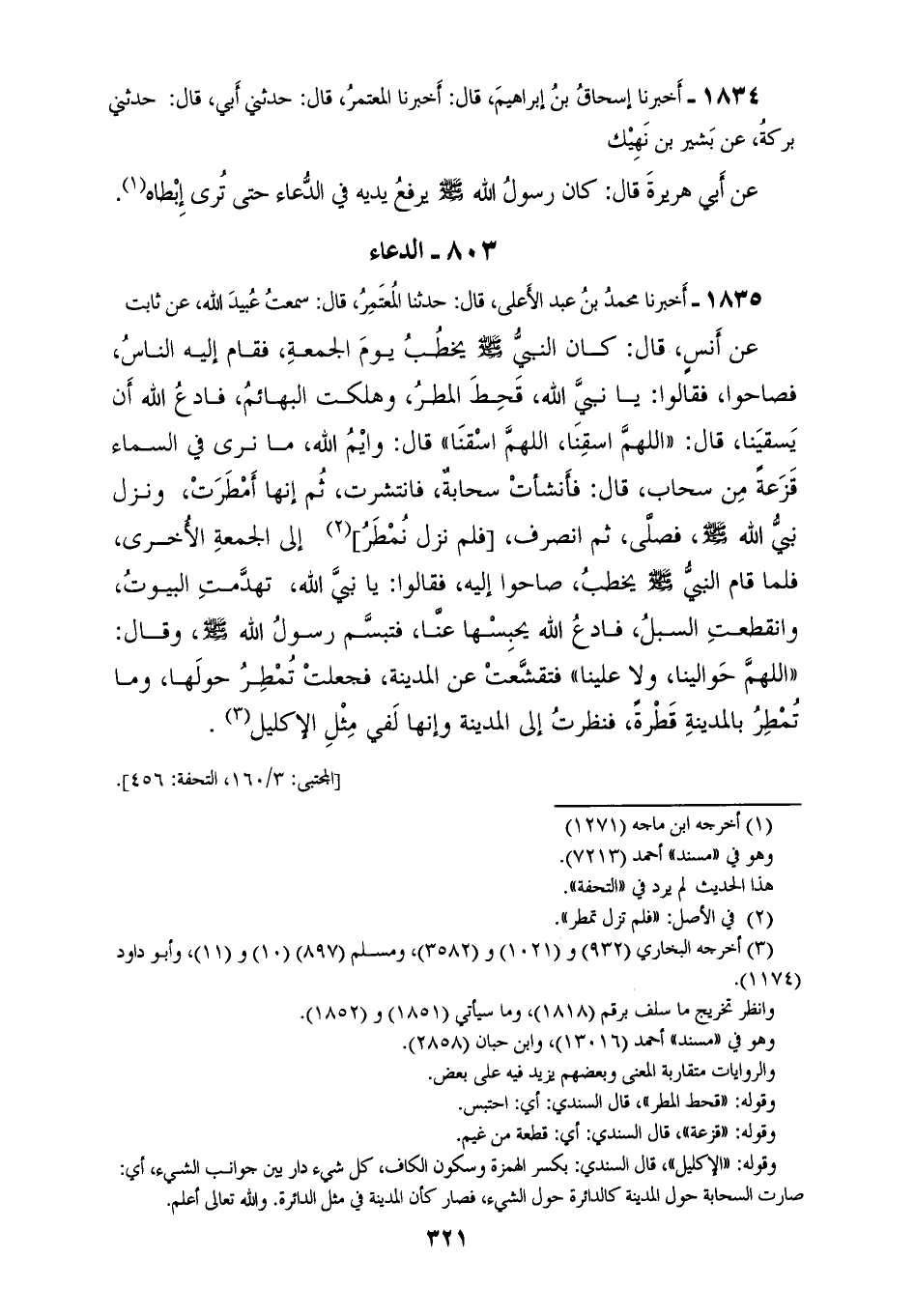 1834 - أَخْبَرَنَا إِسْحَاقُ بْنُ إِبْرَاهِيمَ، قَالَ: أَخْبَرَنَا الْمُعْتَمِرُ قَالَ: حَدَّثَنِي أَبِي، قَالَ: حَدَّثَنِي بَرَكَةُ، عَنْ بَشِيرِ بْنِ نَهِيكٍ، عَنْ أَبِي هُرَيْرَةَ، قَالَ: «كَانَ رَسُولُ اللهِ صَلَّى اللهُ عَلَيْهِ وَسَلَّمَ، §يَرْفَعُ يَدَيْهِ فِي الدُّعَاءِ حَتَّى تُرَى إِبْطَاهُ»