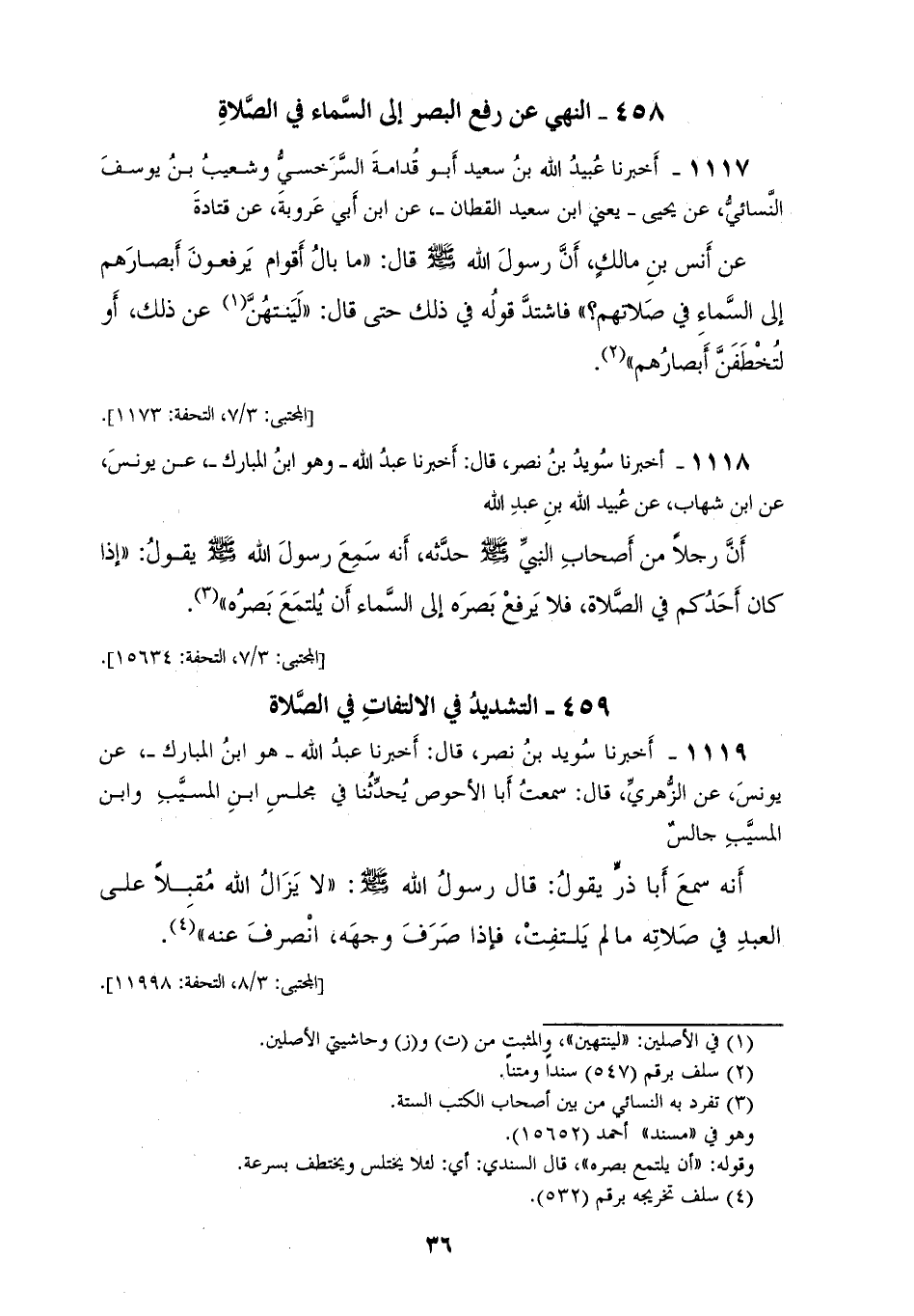 1114 - أَخْبَرَنَا مُحَمَّدُ بْنُ هَاشِمٍ الْبَعْلَبَكِّيُّ، قَالَ: حَدَّثَنَا مُحَمَّدُ بْنُ شُعَيْبِ بْنِ شَابُورَ، عَنْ عَمْرِو بْنِ الْحَارِثِ، قَالَ: أَخْبَرَنِي أَبُو الزُّبَيْرِ، عَنْ جَابِرٍ، قَالَ: بَعَثَنِي النَّبِيُّ صَلَّى اللهُ عَلَيْهِ وَسَلَّمَ فَأَتَيْتُهُ وَهُوَ يَسِيرُ مُشَرِّقًا أَوْ مُغَرِّبًا، فَسَلَّمْتُ عَلَيْهِ، فَأَشَارَ بِيَدِهِ، ثُمَّ سَلَّمْتُ فَأَشَارَ بِيَدِهِ، فَانْصَرَفْتُ فَنَادَانِي النَّاسُ: يَا جَابِرُ، فَأَتَيْتُهُ فَقُلْتُ: يَا رَسُولَ اللهِ إِنِّي سَلَّمْتُ عَلَيْكَ فَلَمْ تَرُدَّ عَلَيَّ، فَقَالَ: «§إِنِّي كُنْتُ أُصَلِّي» قَالَ أَبُو عَبْدِ الرَّحْمَنِ: زَعَمُوا أَنَّهُ لَيْسَ هَذَا الْحَدِيثُ بِمِصْرَ مِنْ حَدِيثِ عَمْرِو بْنِ الْحَارِثِ