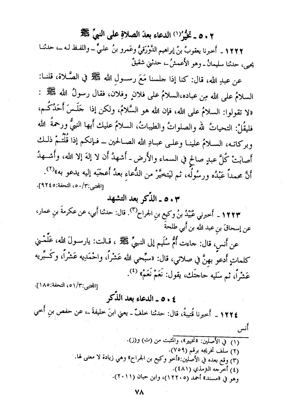 1223 - أَخْبَرَنِي عُبَيْدُ بْنُ وَكِيعِ بْنِ الْجَرَّاحِ، قَالَ: حَدَّثَنَا أَبِي، عَنْ عِكْرِمَةَ بْنِ عَمَّارٍ، عَنْ إِسْحَاقَ بْنِ عَبْدِ اللهِ بْنِ أَبِي طَلْحَةَ، عَنْ أَنَسٍ قَالَ: جَاءَتْ أُمُّ سُلَيْمٍ إِلَى النَّبِيِّ صَلَّى اللهُ عَلَيْهِ وَسَلَّمَ قَالَتْ: يَا رَسُولَ اللهِ، عَلِّمْنِي كَلِمَاتٍ أَدْعُو بِهِنَّ فِي صَلَاتِي، قَالَ: " §سَبِّحِي اللهَ عَشْرًا، وَاحْمَدِيهِ عَشْرًا، وَكَبِّرِيهِ عَشْرًا، ثُمَّ سَلِيهِ حَاجَتَكِ، يَقُولُ: نَعَمْ، نَعَمْ "