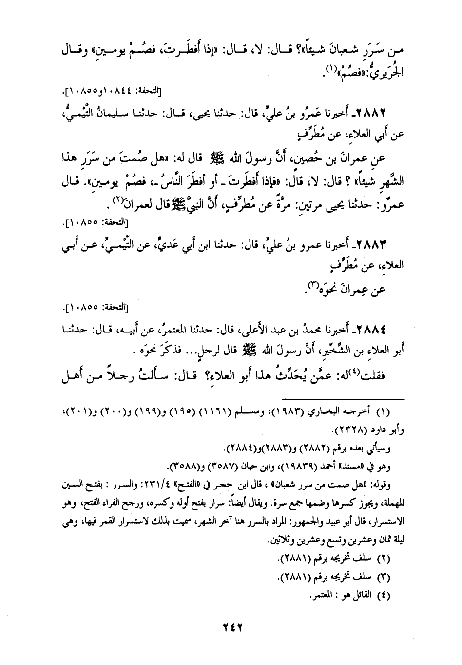 2883 - أَخْبَرَنَا عَمْرُو بْنُ عَلِيٍّ، قَالَ: حَدَّثَنَا ابْنُ أَبِي عَدِيٍّ، عَنِ التَّيْمِيِّ، عَنْ أَبِي الْعَلَاءِ، عَنْ مُطَرِّفٍ، عَنْ عِمْرَانَ، نَحْوَهُ