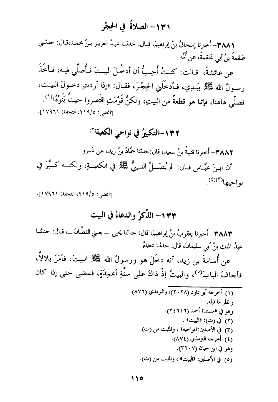 3882 - أَخْبَرَنَا قُتَيْبَةُ بْنُ سَعِيدٍ، قَالَ: حَدَّثَنَا حَمَّادُ بْنُ زَيْدٍ، عَنْ عَمْرٍو، أَنَّ ابْنَ عَبَّاسٍ، قَالَ: لَمْ يُصَلِّ النَّبِيَّ صَلَّى اللهُ عَلَيْهِ وَسَلَّمَ فِي الْكَعْبَةِ، وَلَكِنْ «§كَبَّرَ فِي نَوَاحِيهَا»