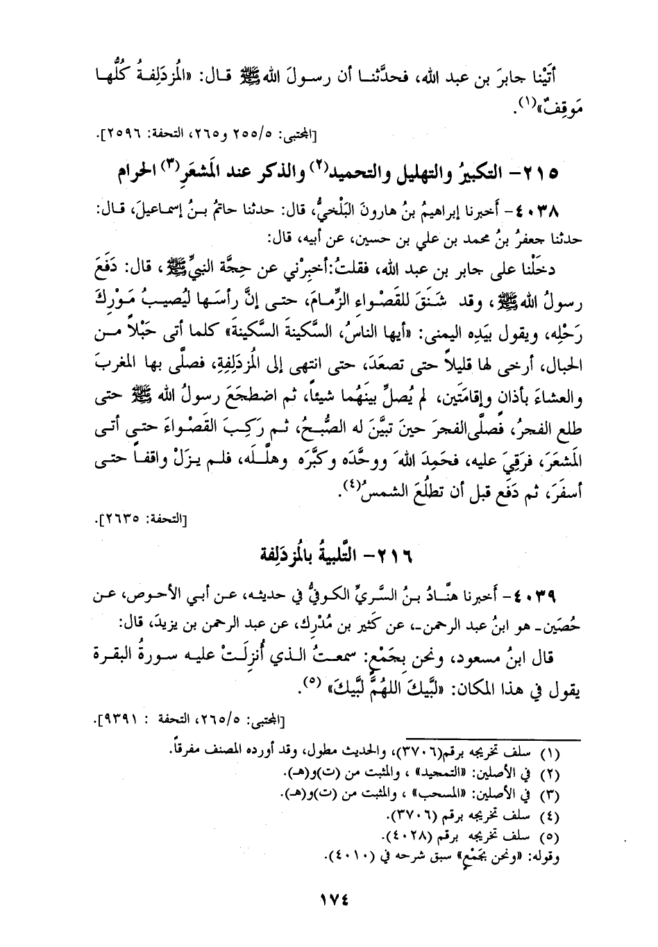 4039 - أَخْبَرَنَا هَنَّادُ بْنُ السَّرِيِّ الْكُوفِيُّ، فِي حَدِيثِهِ عَنْ أَبِي الْأَحْوَصِ، عَنْ حُصَيْنٍ هُوَ ابْنُ عَبْدِ الرَّحْمَنِ، عَنْ كَثِيرِ بْنِ مُدْرِكٍ، عَنْ عَبْدِ الرَّحْمَنِ بْنِ يَزِيدَ، قَالَ: قَالَ ابْنُ مَسْعُودٍ وَنَحْنُ بِجَمْعٍ سَمِعْتُ الَّذِي أُنْزِلَتْ عَلَيْهِ سُورَةُ الْبَقَرَةِ يَقُولُ: فِي هَذَا الْمَكَانِ: «§لَبَّيْكَ اللهُمَّ لَبَّيْكَ»
