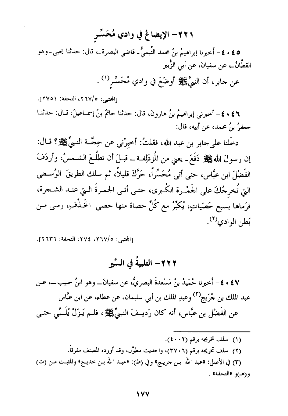 4045 - أَخْبَرَنَا إِبْرَاهِيمُ بْنُ مُحَمَّدٍ التَّيْمِيُّ، قَاضِي الْبَصْرَةِ قَالَ: حَدَّثَنَا يَحْيَى وَهُوَ الْقَطَّانُ، عَنْ سُفْيَانَ، عَنْ أَبِي الزُّبَيْرِ، عَنْ جَابِرٍ، أَنَّ النَّبِيَّ صَلَّى اللهُ عَلَيْهِ وَسَلَّمَ «§أَوْضَعَ فِي وَادِي مُحَسِّرٍ»