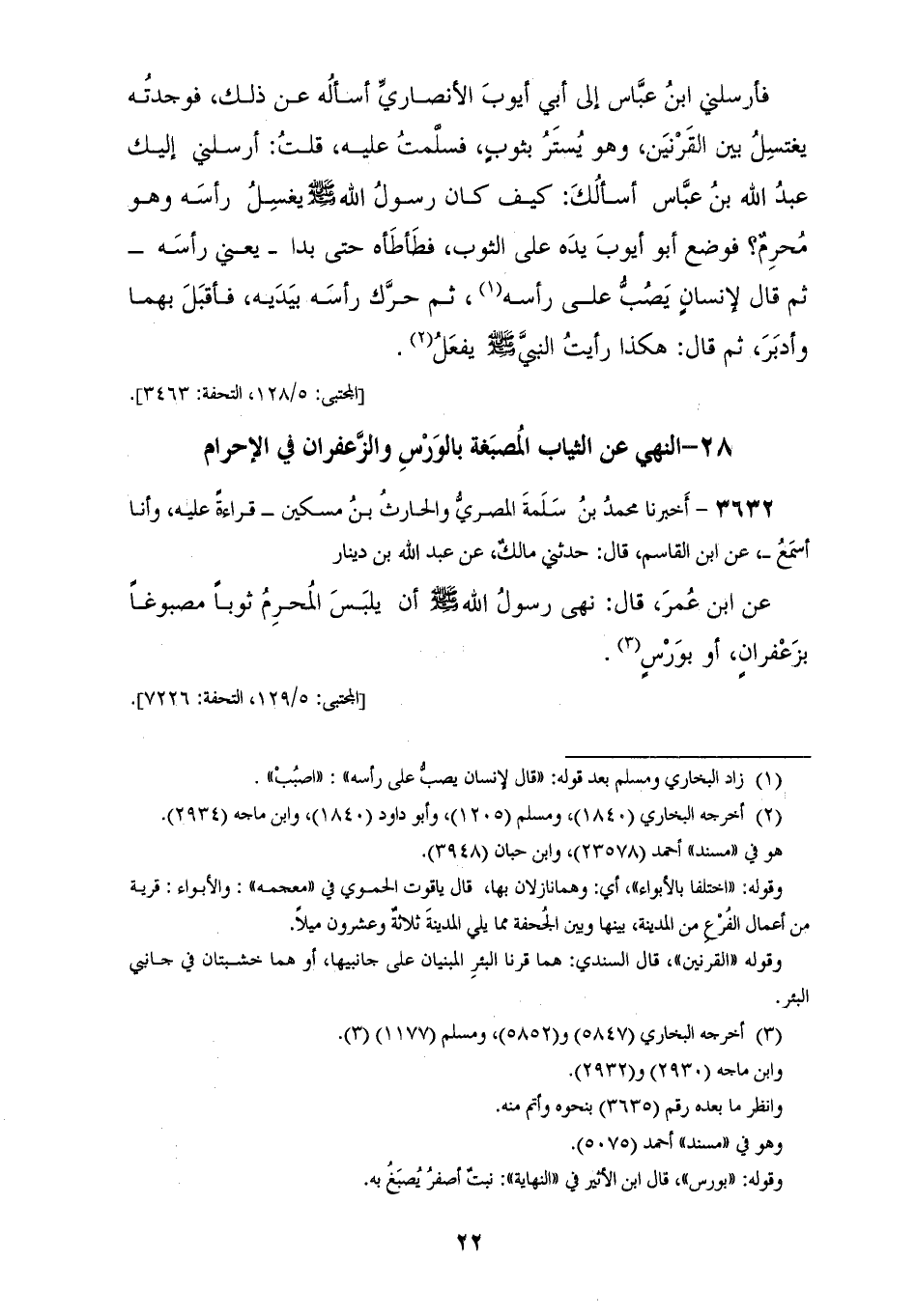 §النَّهْيُ عَنِ الثِّيَابِ الْمُصَبَّغَةِ بِالْوَرْسِ وَالزَّعْفَرَانِ فِي الْإِحْرَامِ