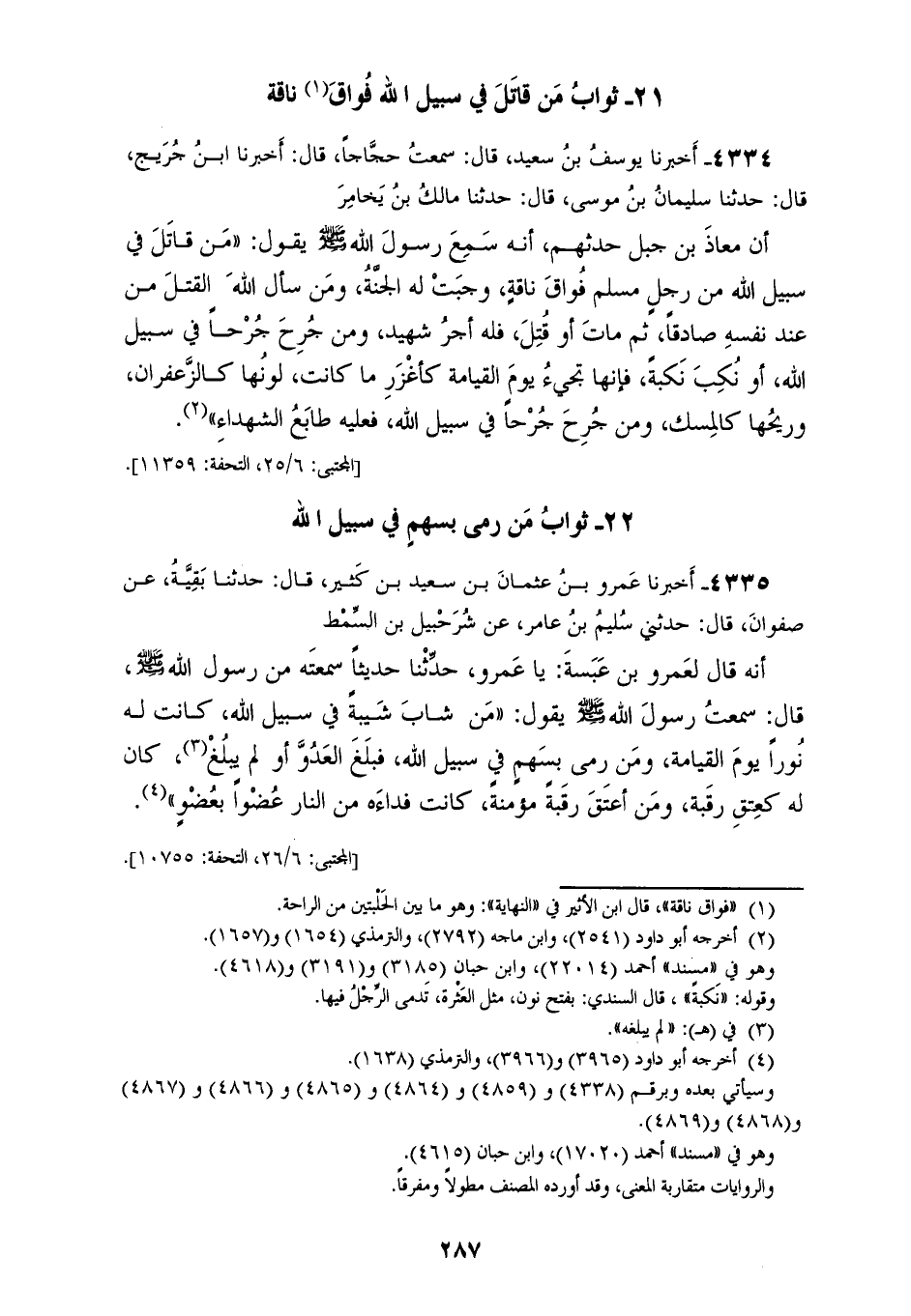 §ثَوَابُ مَنْ قَاتَلَ فِي سَبِيلِ اللهِ فَوَاقَ نَاقَةٍ
